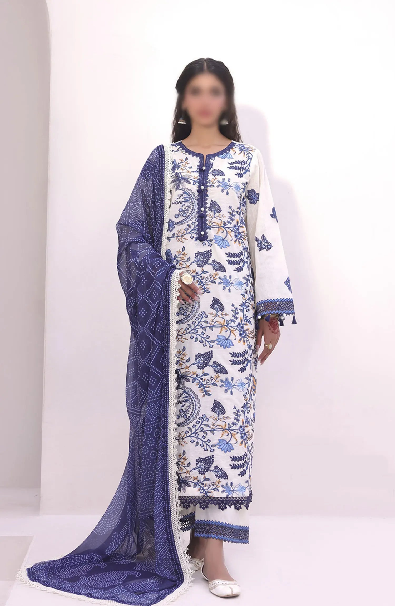 Modest Embroidered Chiffon Stitched 3 Piece Suit - 9615-Nblu - MOD25PRF - Blue - Festive Girls Collection