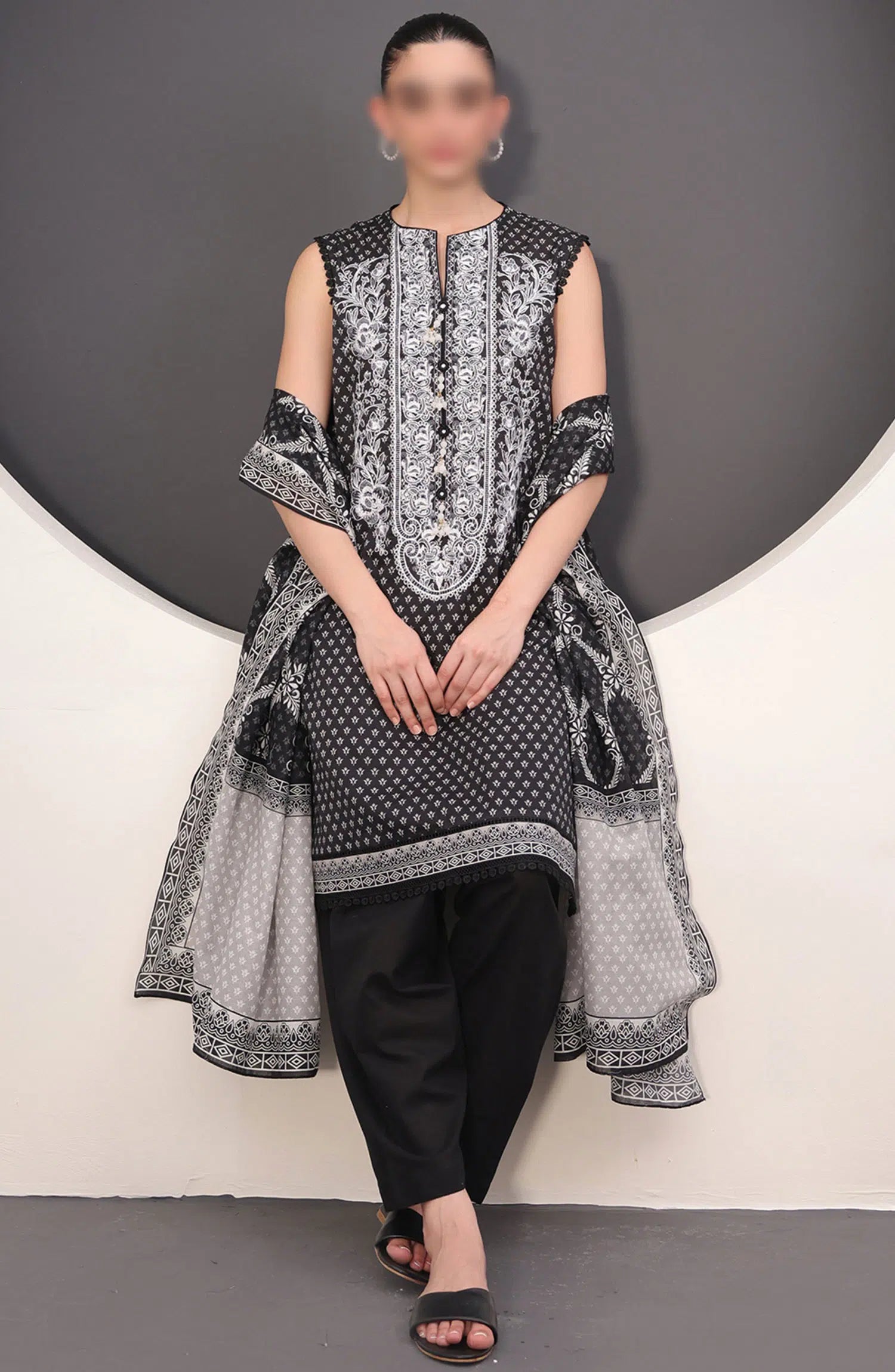 Zellbury Unstitched Monochrome Collection 2024 has been styled in the image for photography and illustrative purposes.