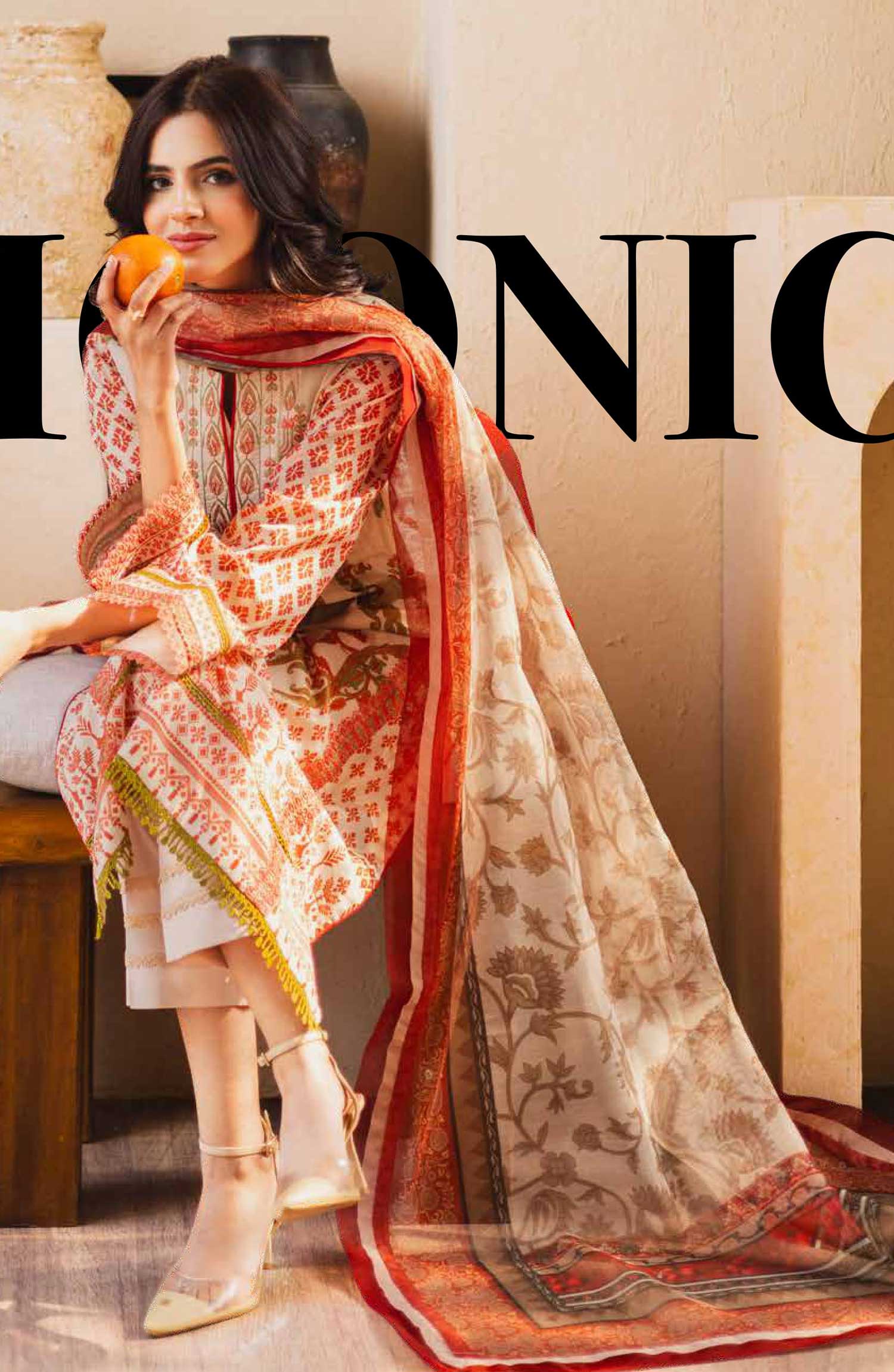 Zen by Freesia Embroidered Lawn Unstitched 3 Piece - FW-50079 MANAR - FR25Z - Dark Orange - Summer Collection