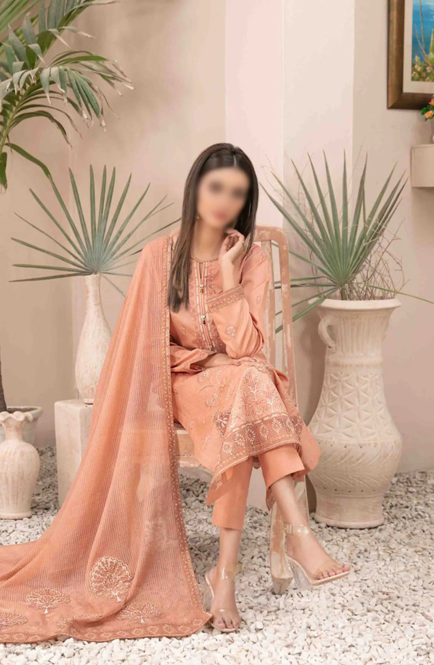 Zenel - Fancy Embroidered Jacquard Lawn Collection 2024 has been styled in the image for photography and illustrative purposes.