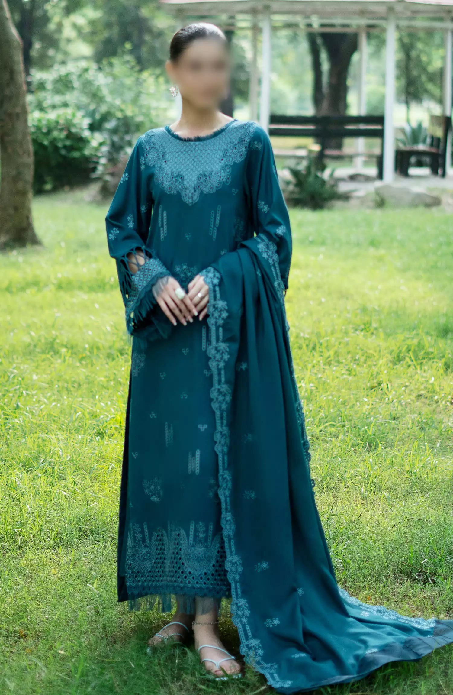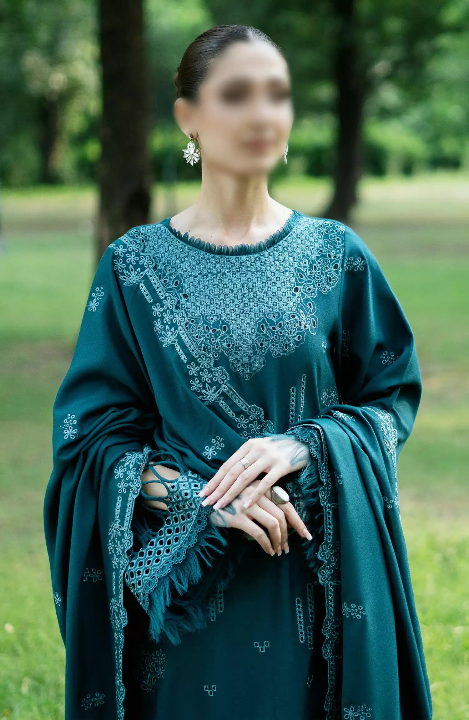 Zephyr Chikankari Wool Collection 2024 has been styled in the image for photography and illustrative purposes.
