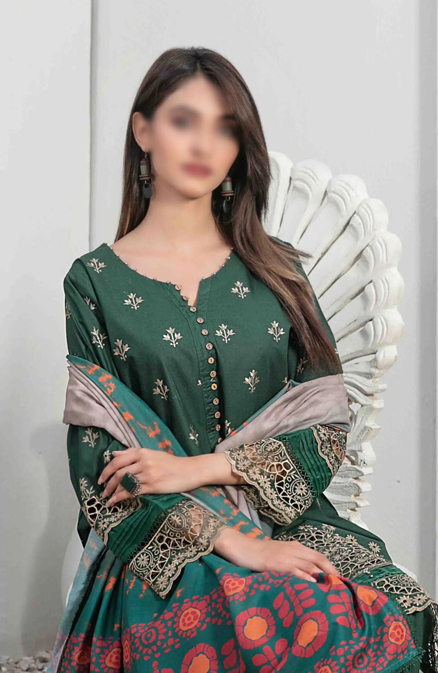 Zeyda - Stitched Schiffli Lawn Collection Vol 01 2024 has been styled in the image for photography and illustrative purposes.