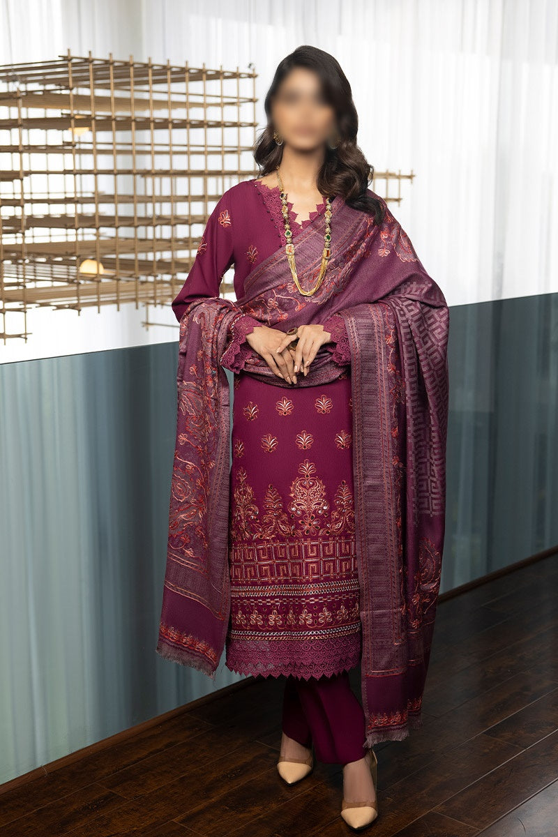 Zimal Embroidered Wool Collection 2023 has been styled in the image for photography and illustrative purposes.