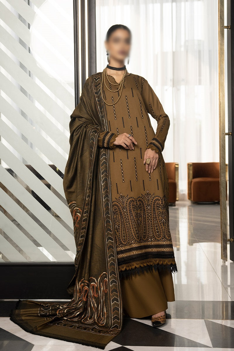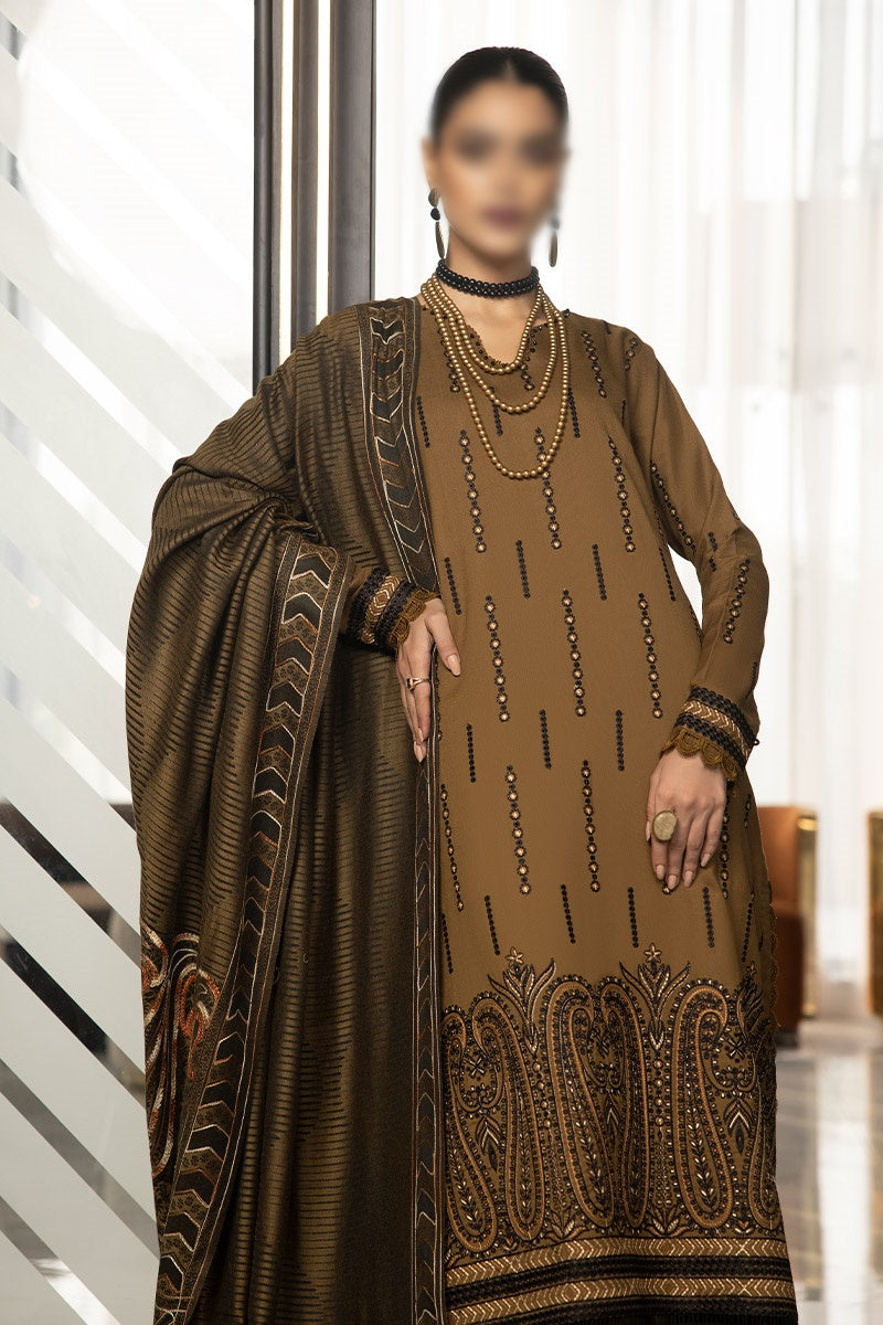 Shaista Supreme Embroidered Peach Unstitched 3 Piece Suit - D-91 - SHS25SP - Brown - Winter Collection