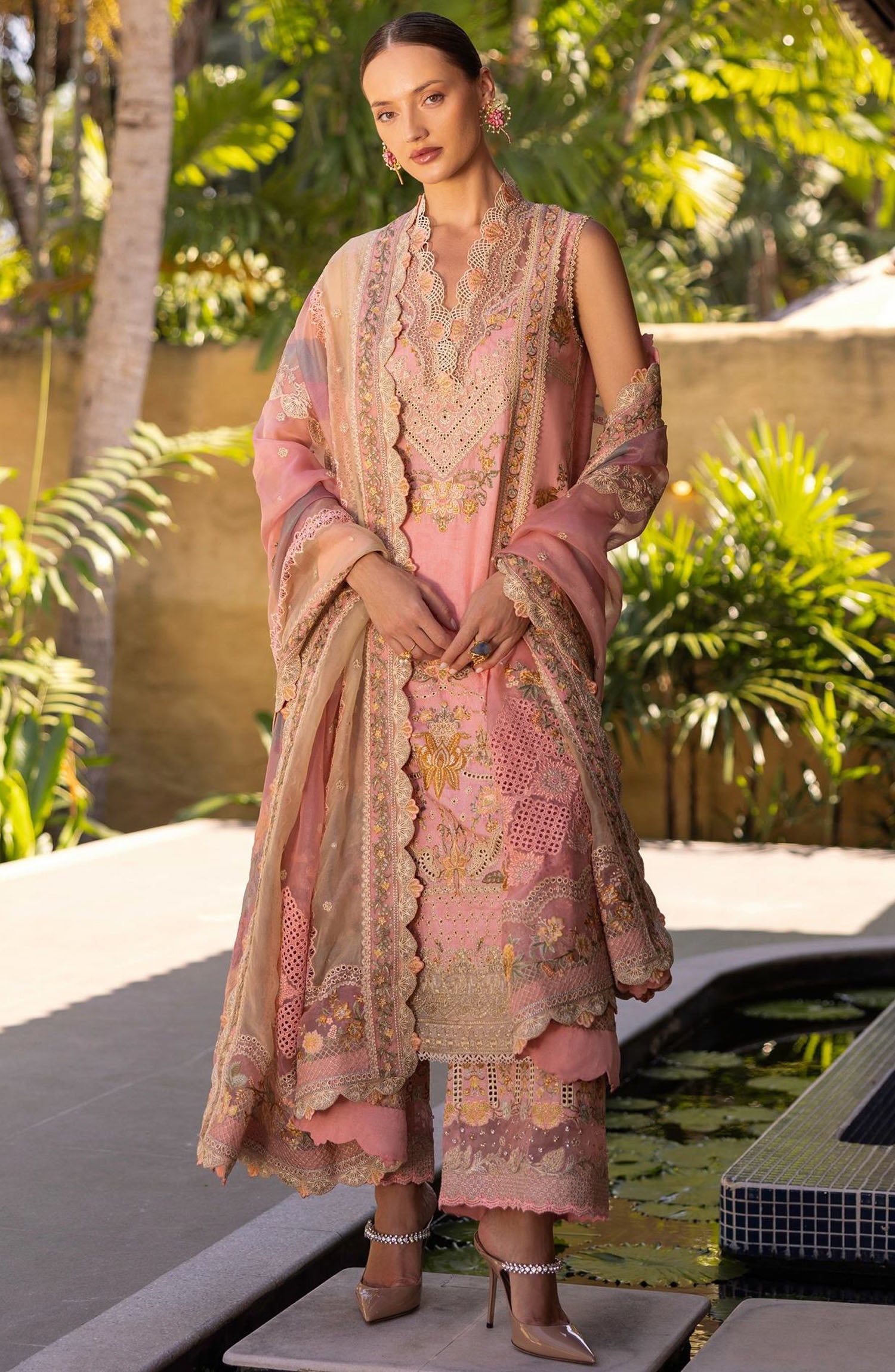 Embroidered Front + Back Hem Border (Organza) 2 Meters