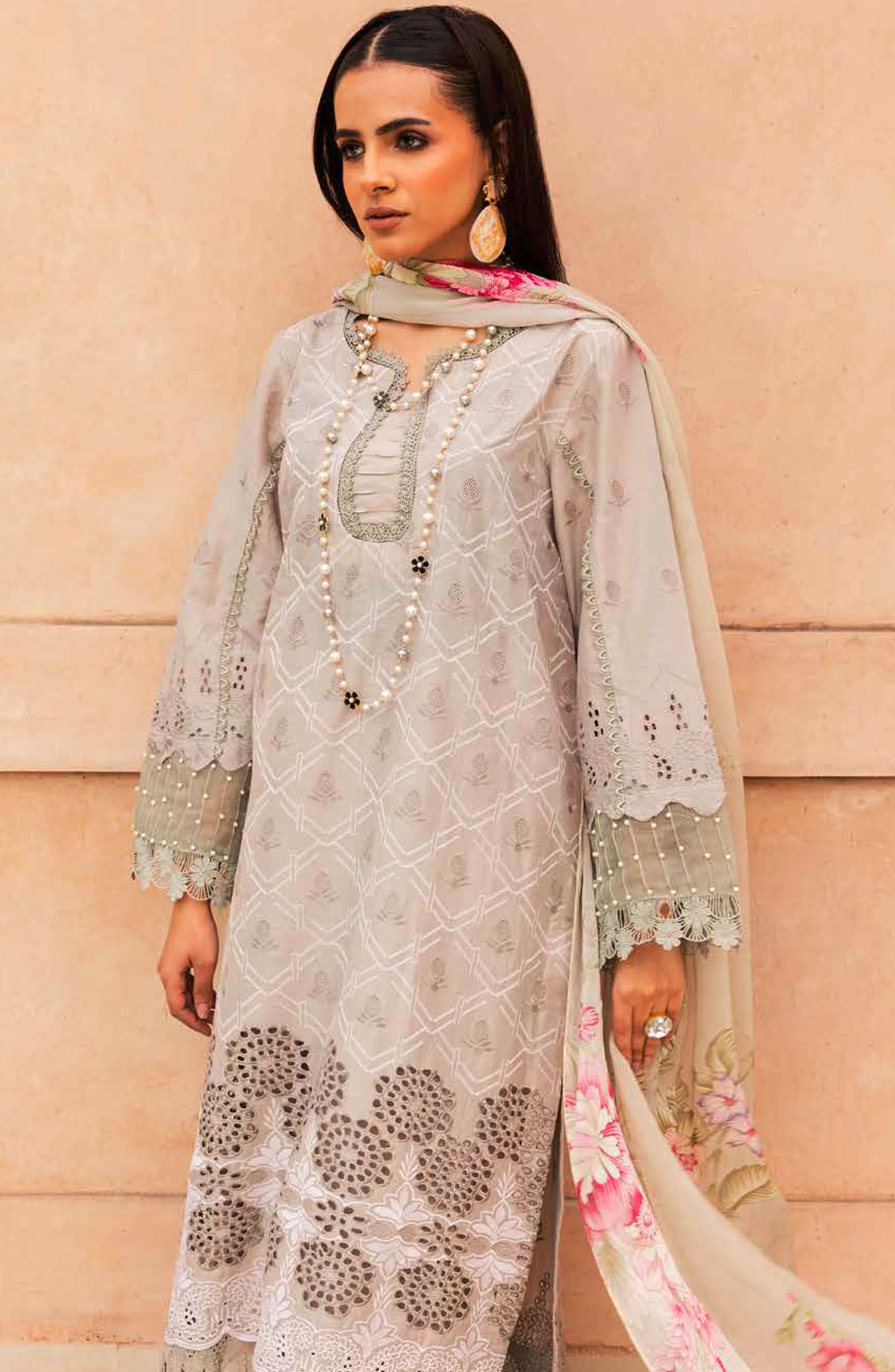 Ziva by Johra Chikankari Lawn Unstitched 3 Piece Suit - JH-168 - JH25ZL - Grey - Summer Collection