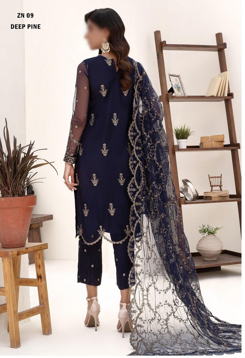 Nazneen Luxury Formals by Zarif Collection 2023 has been styled in the image for photography and illustrative purposes.