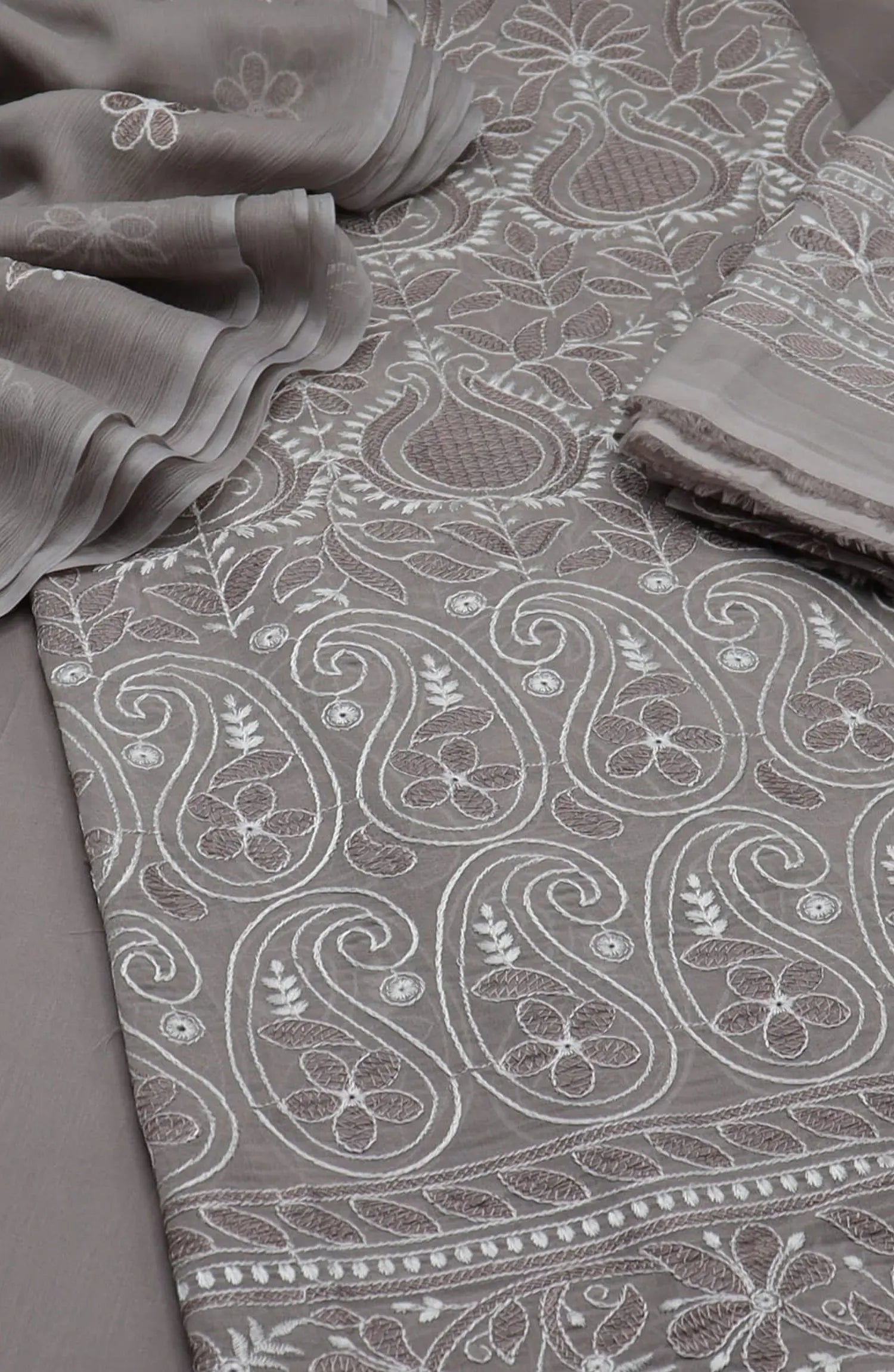 3 Piece | All Categories Women | Amna Khadija | Shop by Color Dark Grey | Shop by Season All Seasons | Swiss | Unstitched Designer Wear | Women | Zohreh Unstitched Luxury Embroidered Swiss Collection 2024