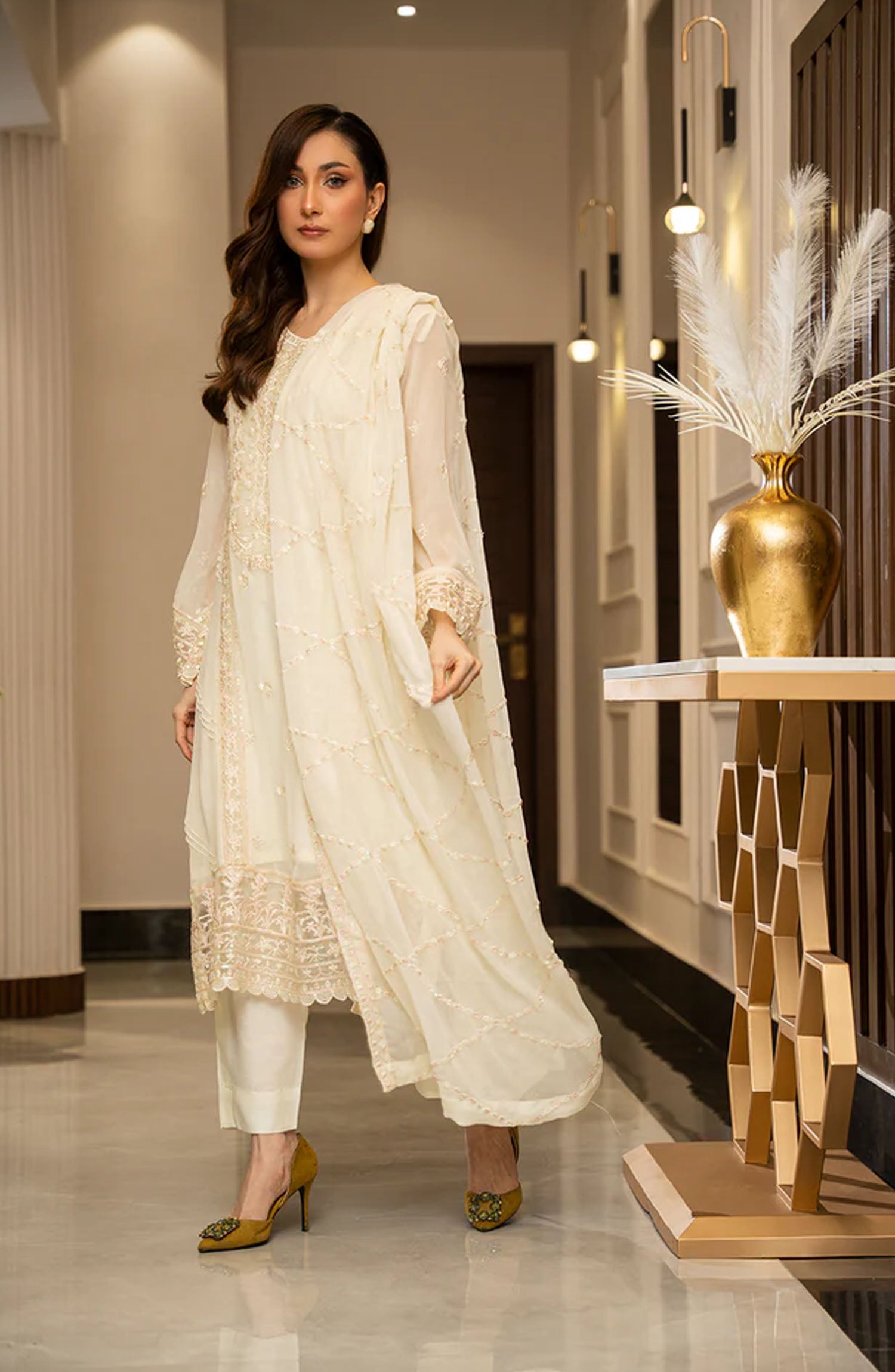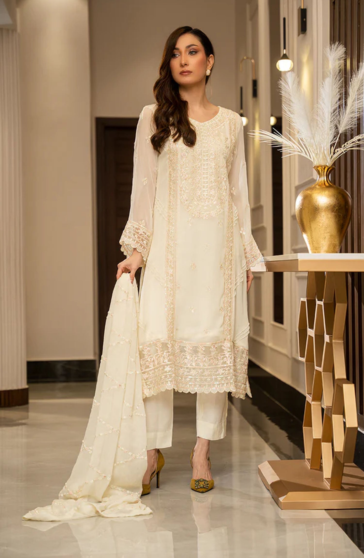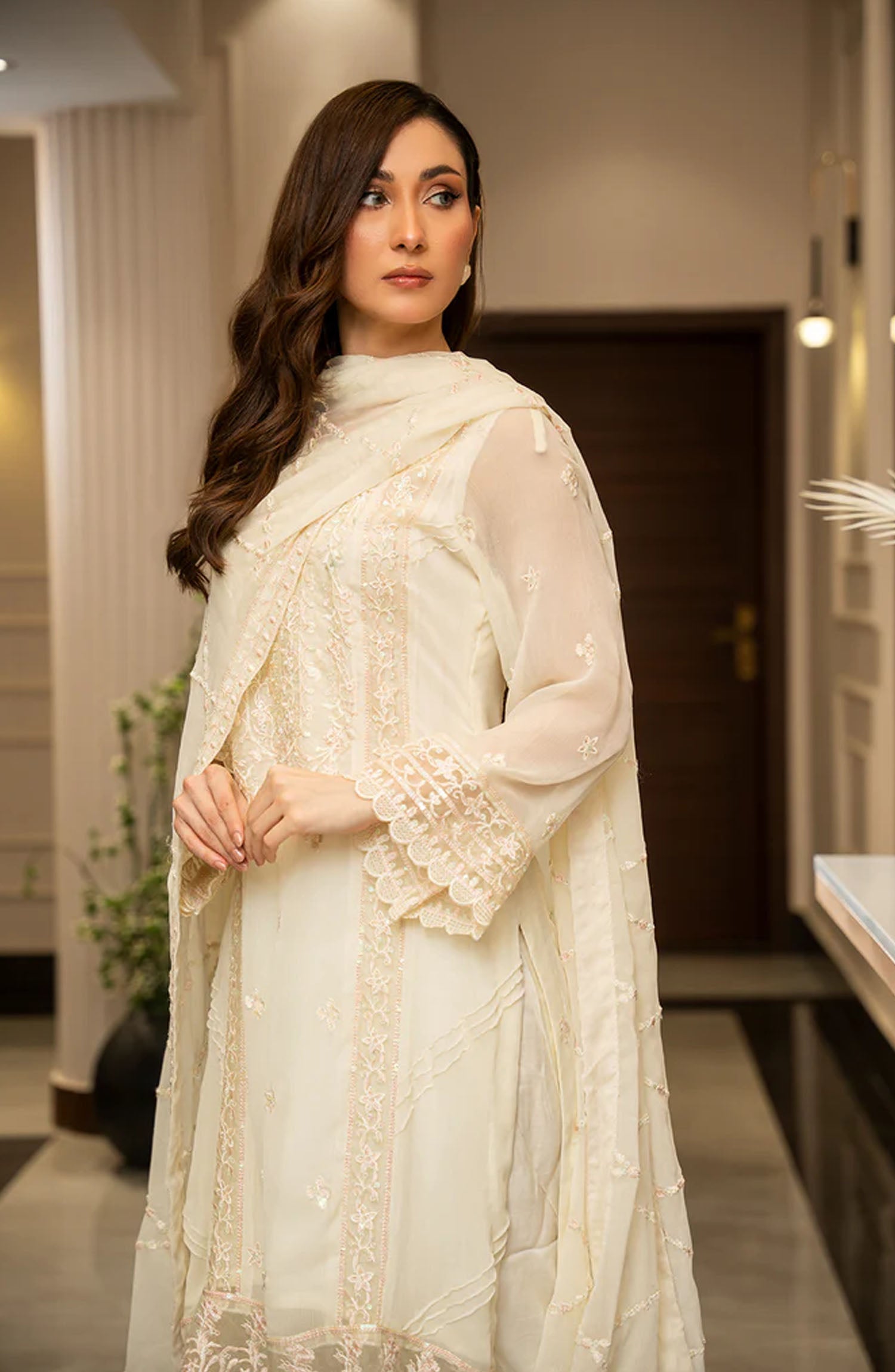 Zouj Embroidered Chiffon Unstitched 4 Piece Suit - Ivory Elegance - ZJ25EUCE - Off White - Festive Collection
