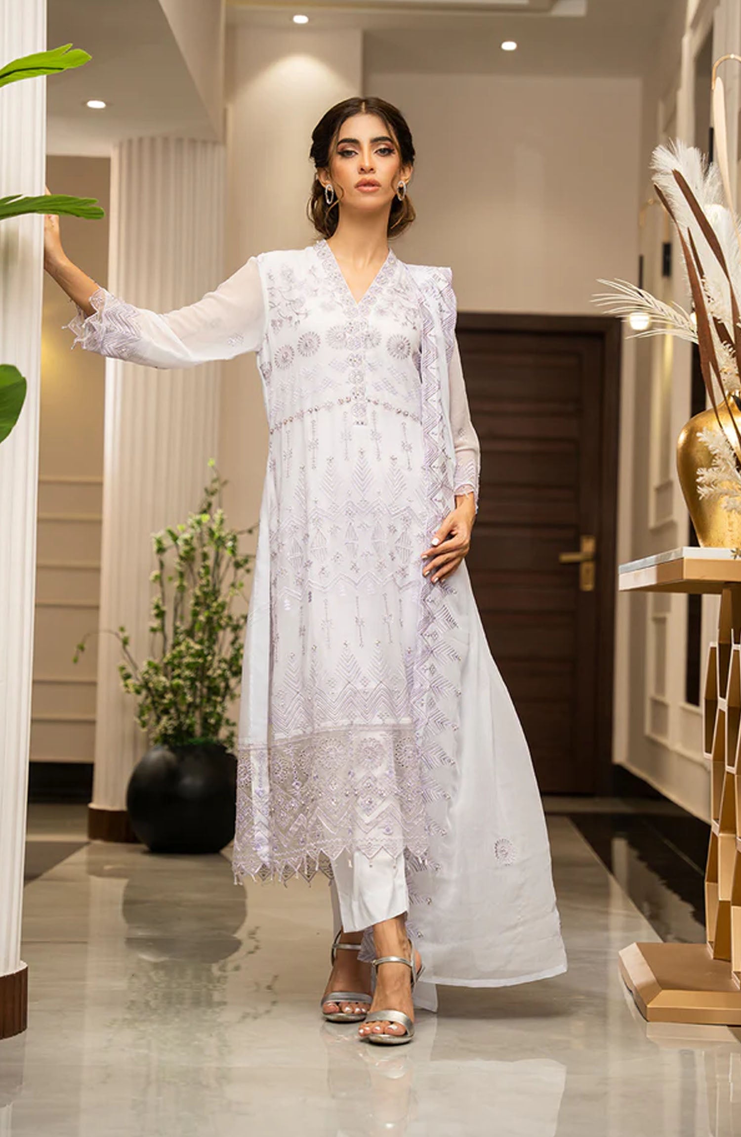 Zouj Embroidered Chiffon Unstitched 4 Piece Suit - Lilac Lush - ZJ25EUCE - Blue - Festive Collection