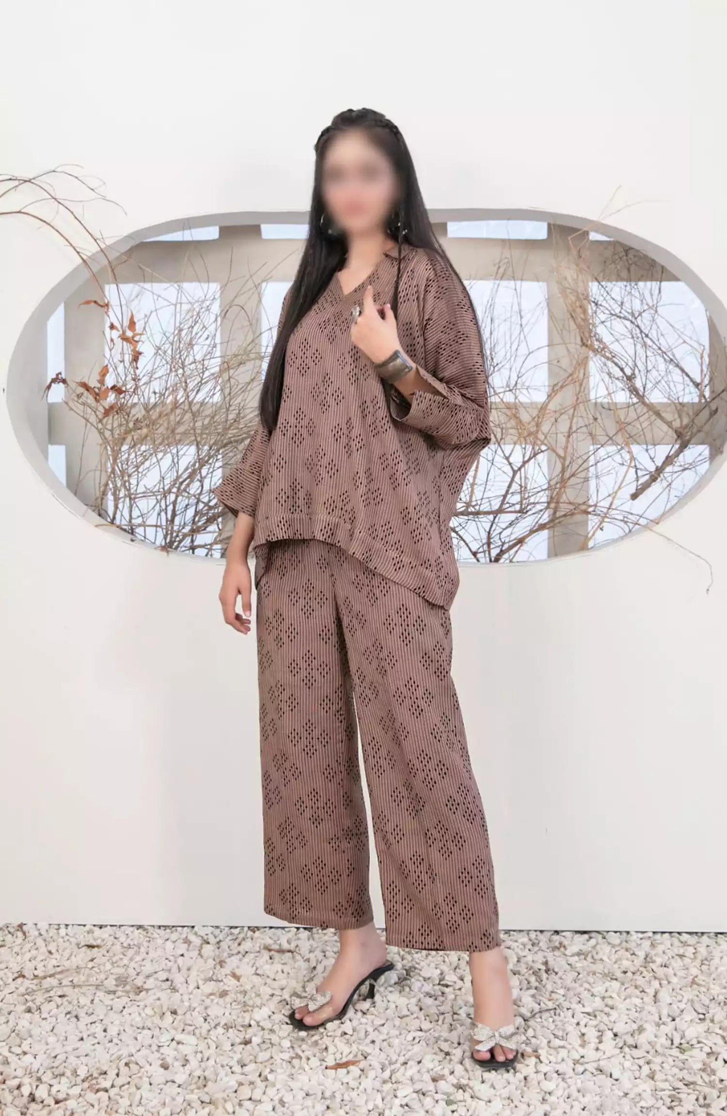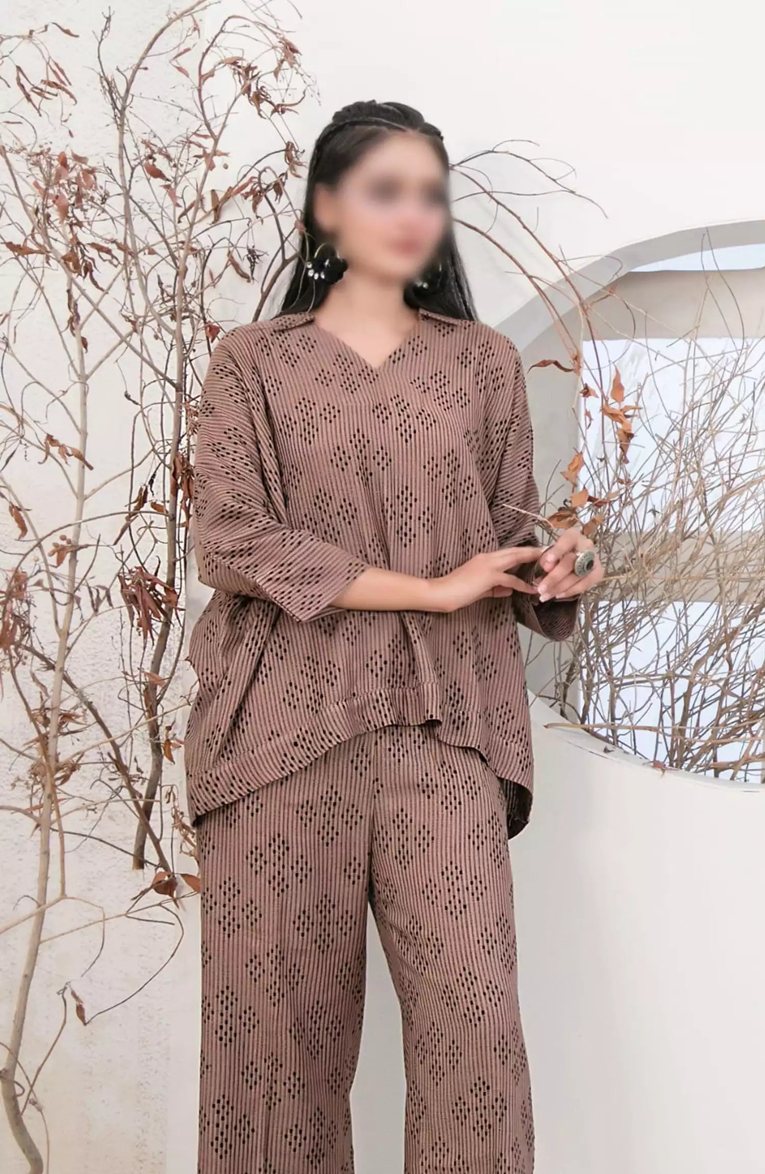 ZULA - Solid Stitched Cotton Waffle Co Ord Set Collection 2024 has been styled in the image for photography and illustrative purposes.
