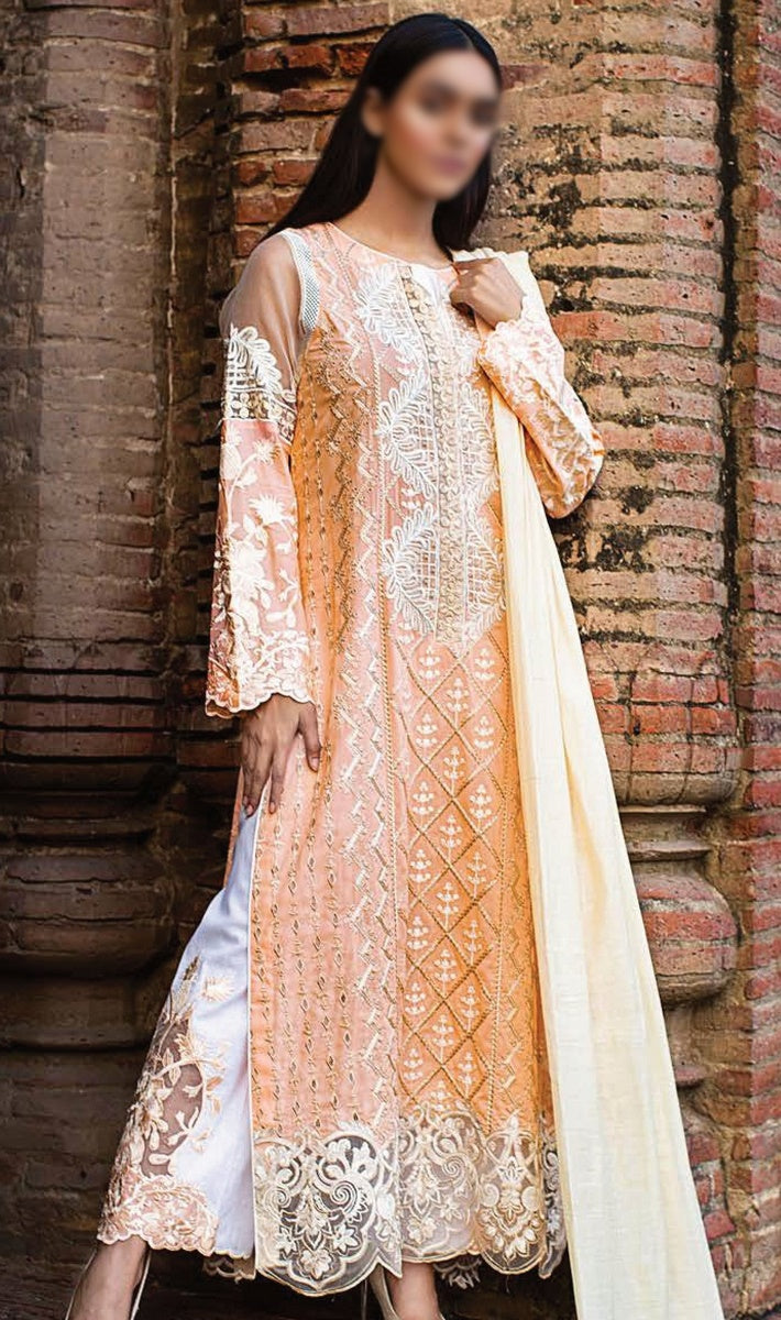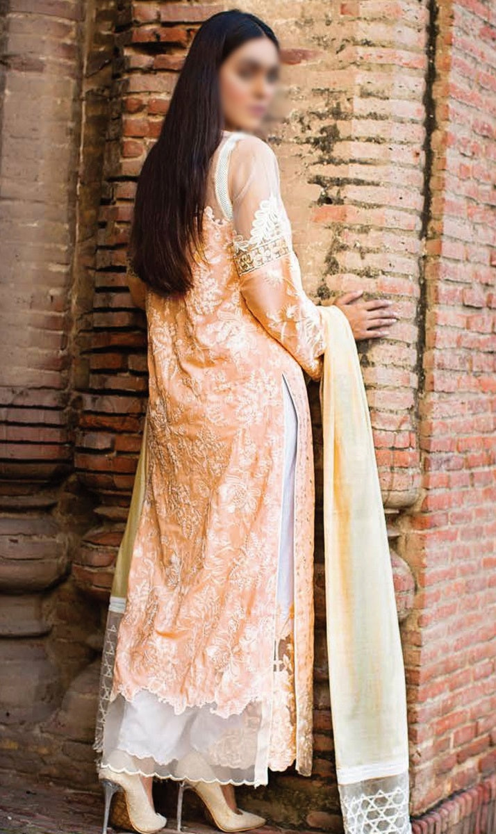 The standard style comes as a long-sleeved kameez with dupatta and trouser/shalwar.