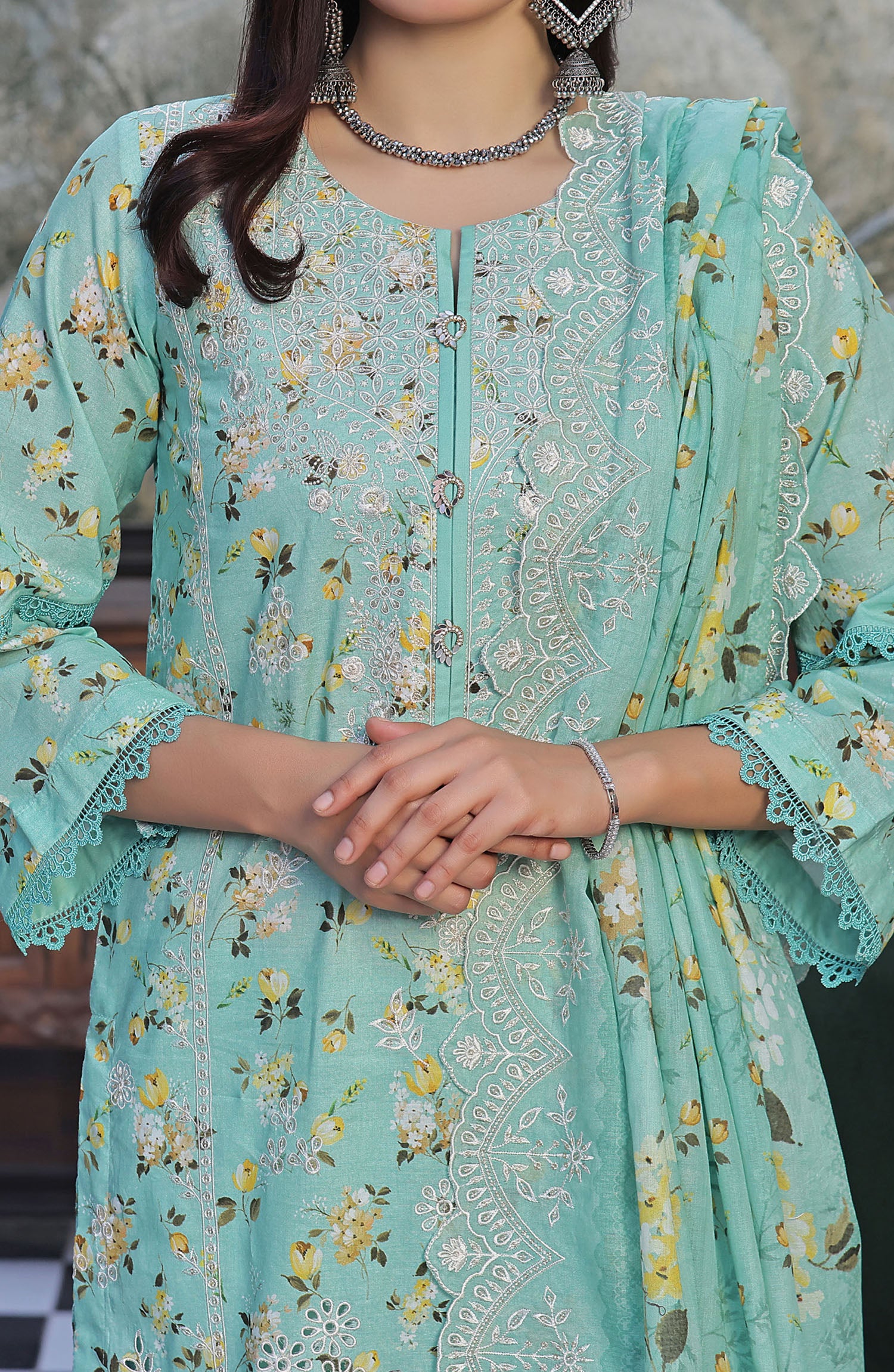 Rua by Casual Lite Embroidered Premium Linen Stitched 3 Piece Suit - D-07 Teal Mirage - CL25RU - Teal - Winter Collection