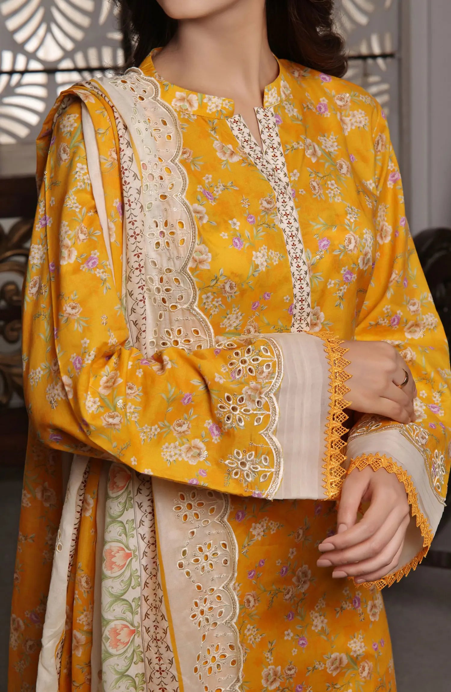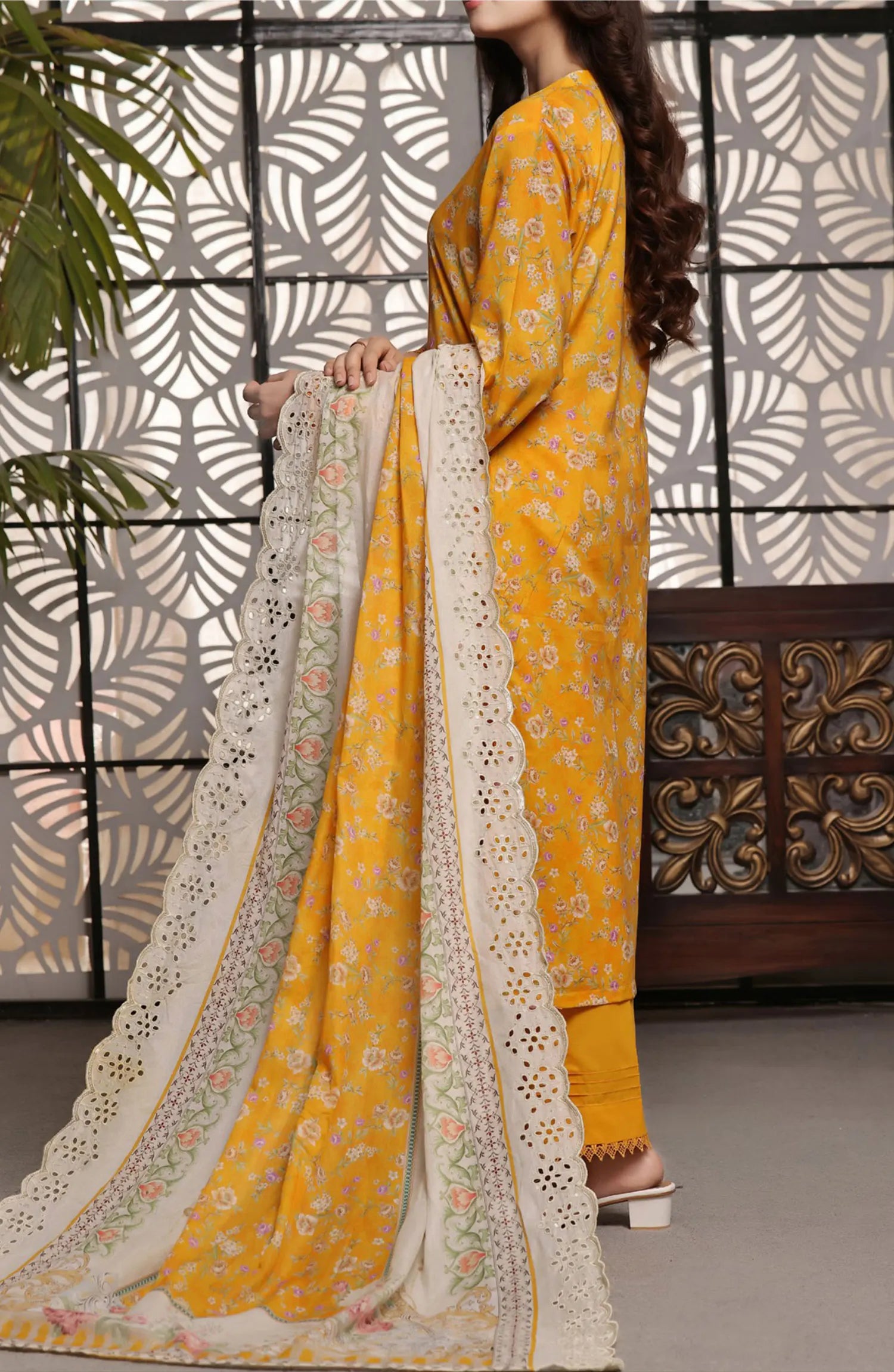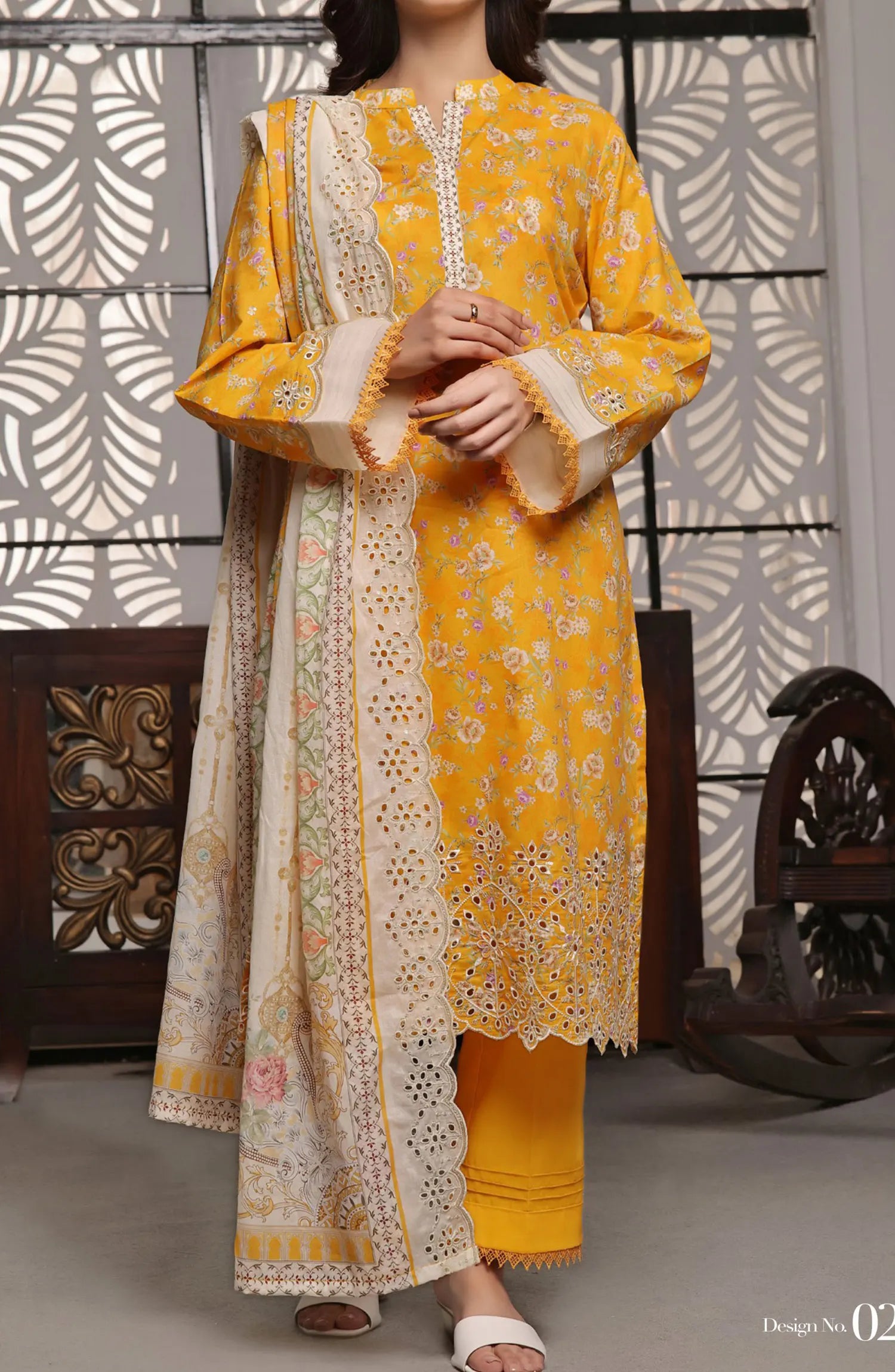 Zynah Digital Chickenkari Lawn Collection VOl 01 By VS Textiles has been styled in the image for photography and illustrative purposes.