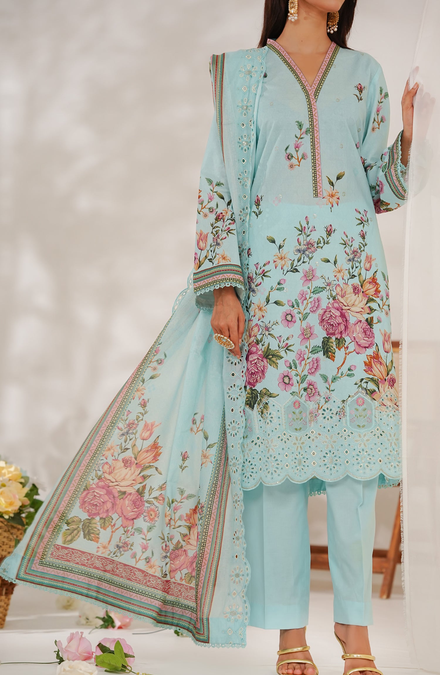 Digital Printed Embroidered Dupatta