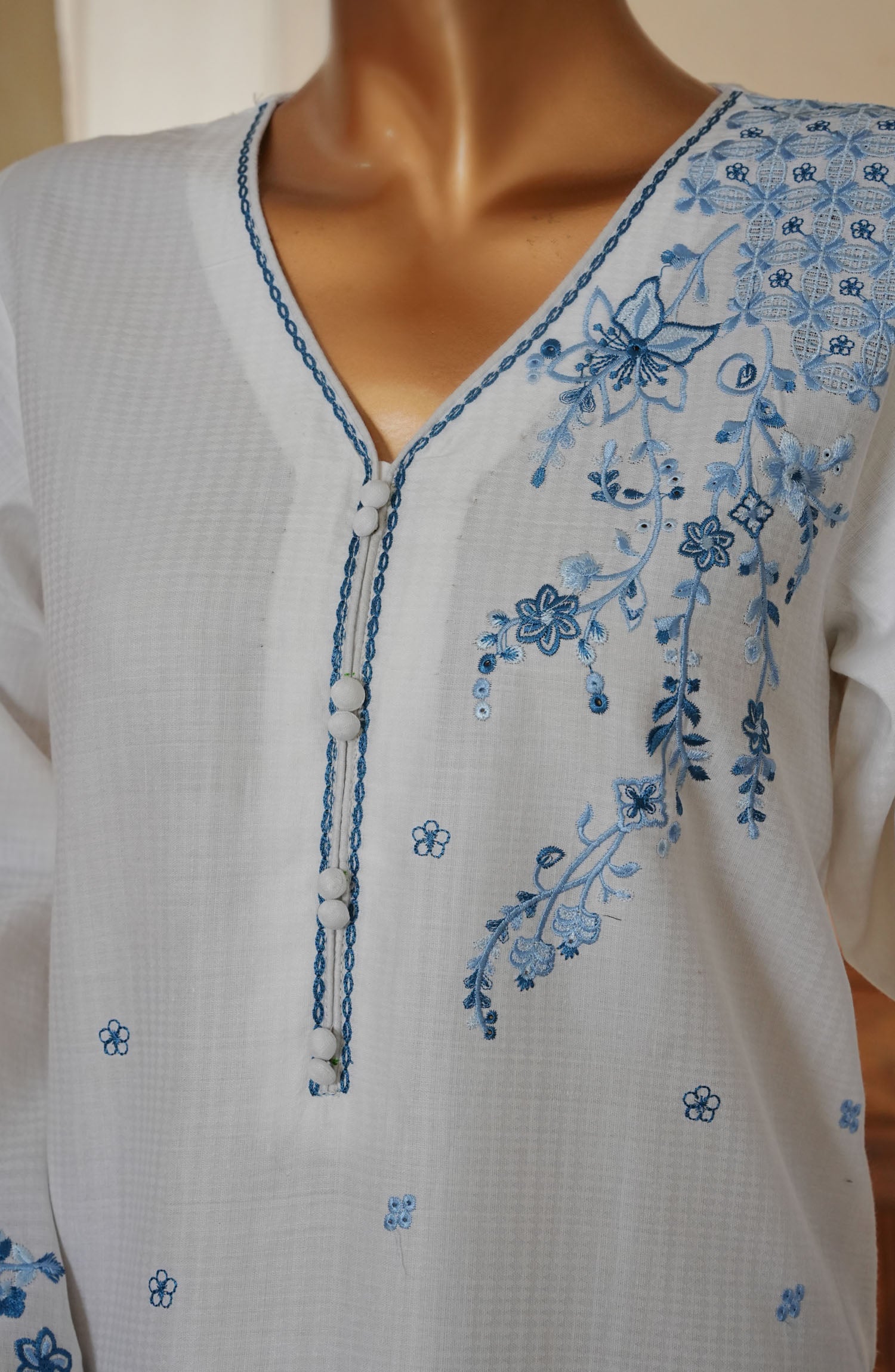 Zynara by Amna Khadija Embroidered Cotton Stitched 2 Piece Suit - D-294 White - AM25Zynara - Summer Collection