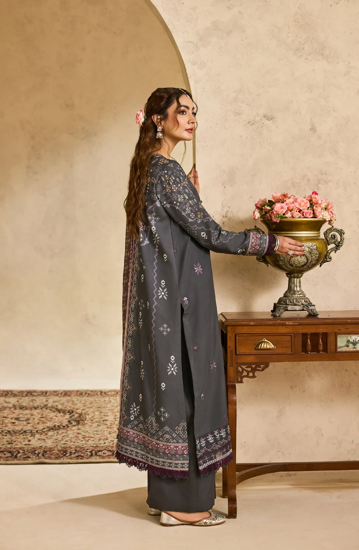 Zync by Florent Embroidered Khaddar Unstitched 3 Piece Suit - FL-3A - FL25ZKH - Grey - Winter Collection