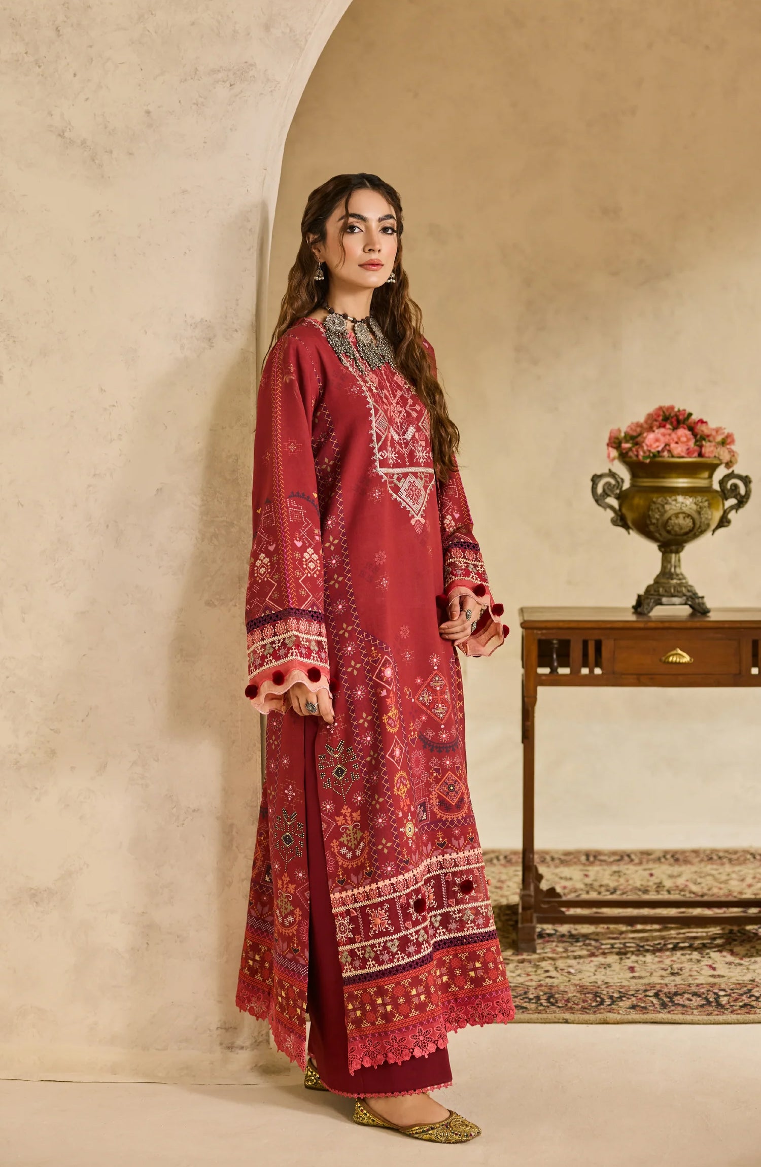 Zync by Florent Embroidered Khaddar Unstitched 3 Piece Suit - FL-4A - FL25ZKH - Maroon - Winter Collection