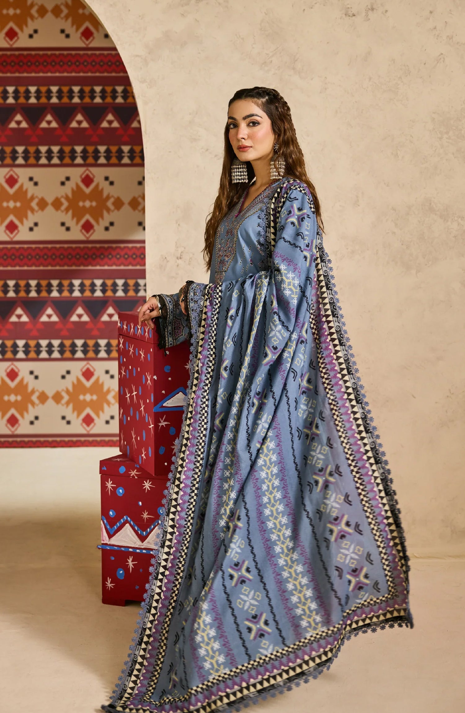 Zync by Florent Embroidered Khaddar Unstitched 3 Piece Suit - FL-6A - FL25ZKH - Blue - Winter Collection