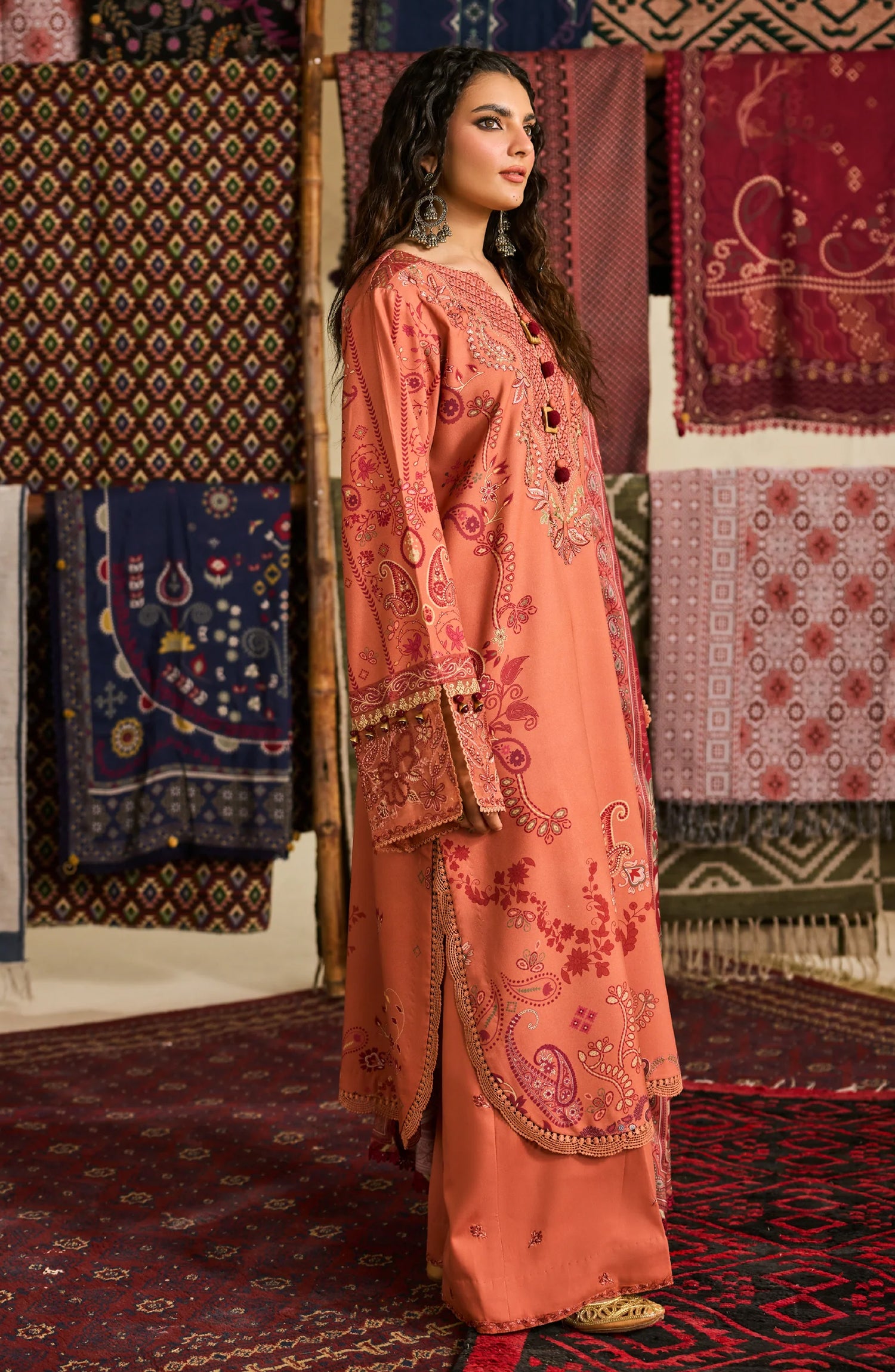 Zync by Florent Embroidered Khaddar Unstitched 3 Piece Suit - FL-9B - FL25ZKH - Rust - Winter Collection