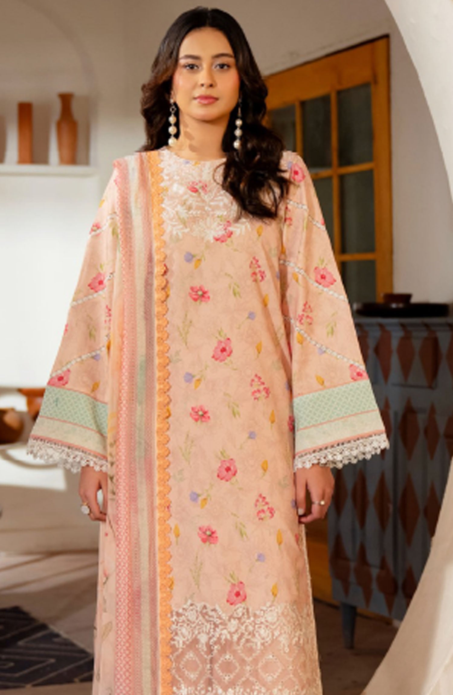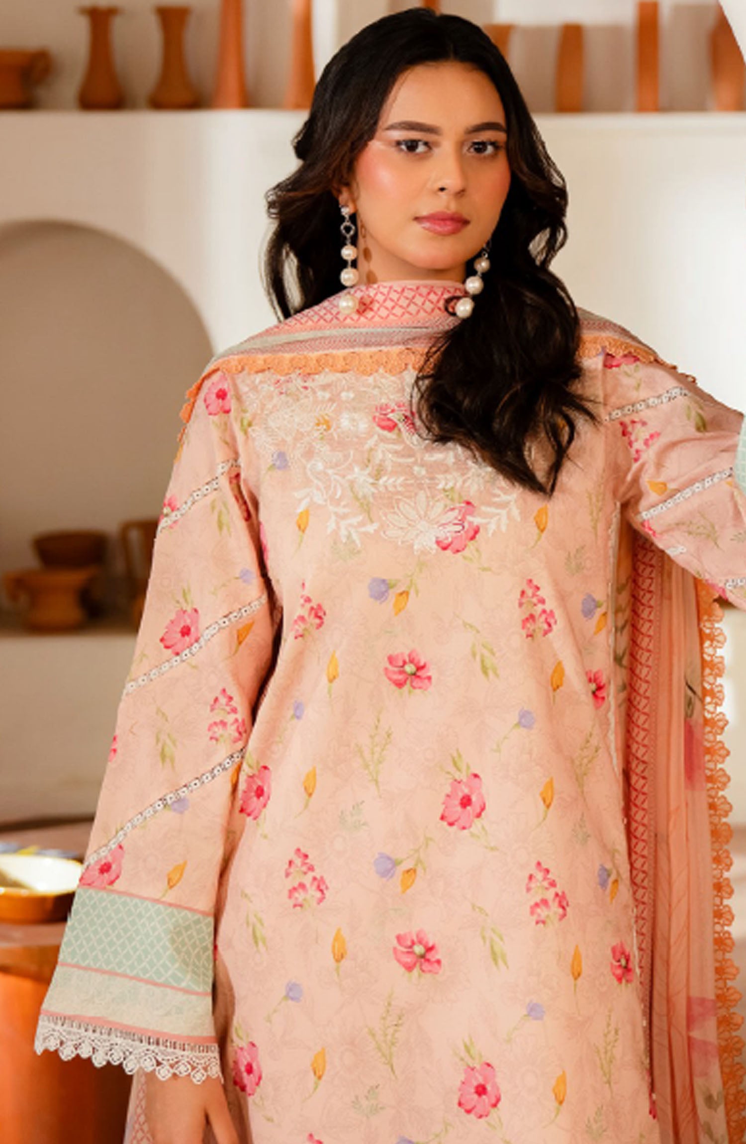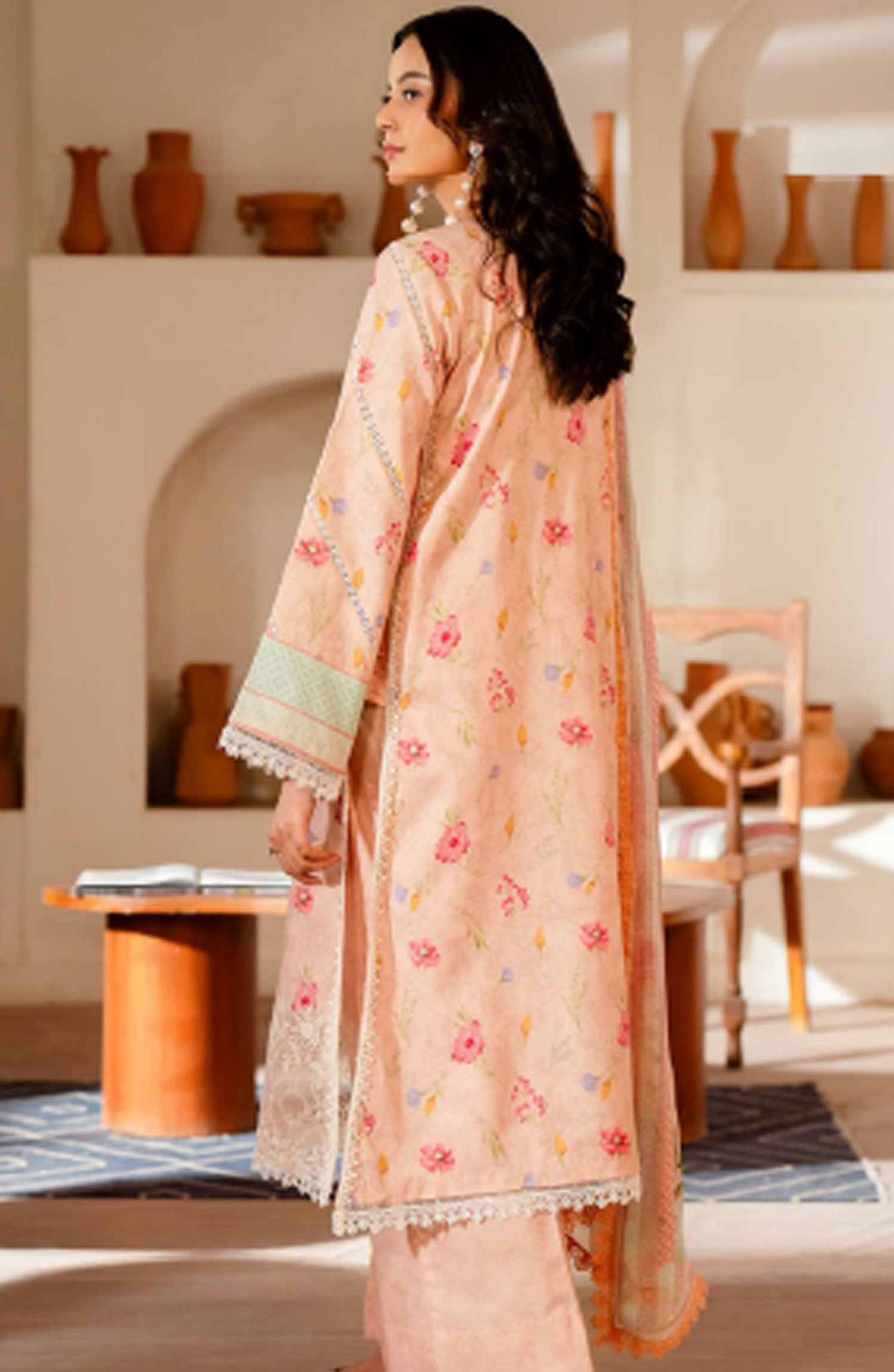 Home Zync by Florent Embroidered Lawn Unstitched 3 Piece Suit - FL-02 - FL25ZL - Peach - Summer Collection