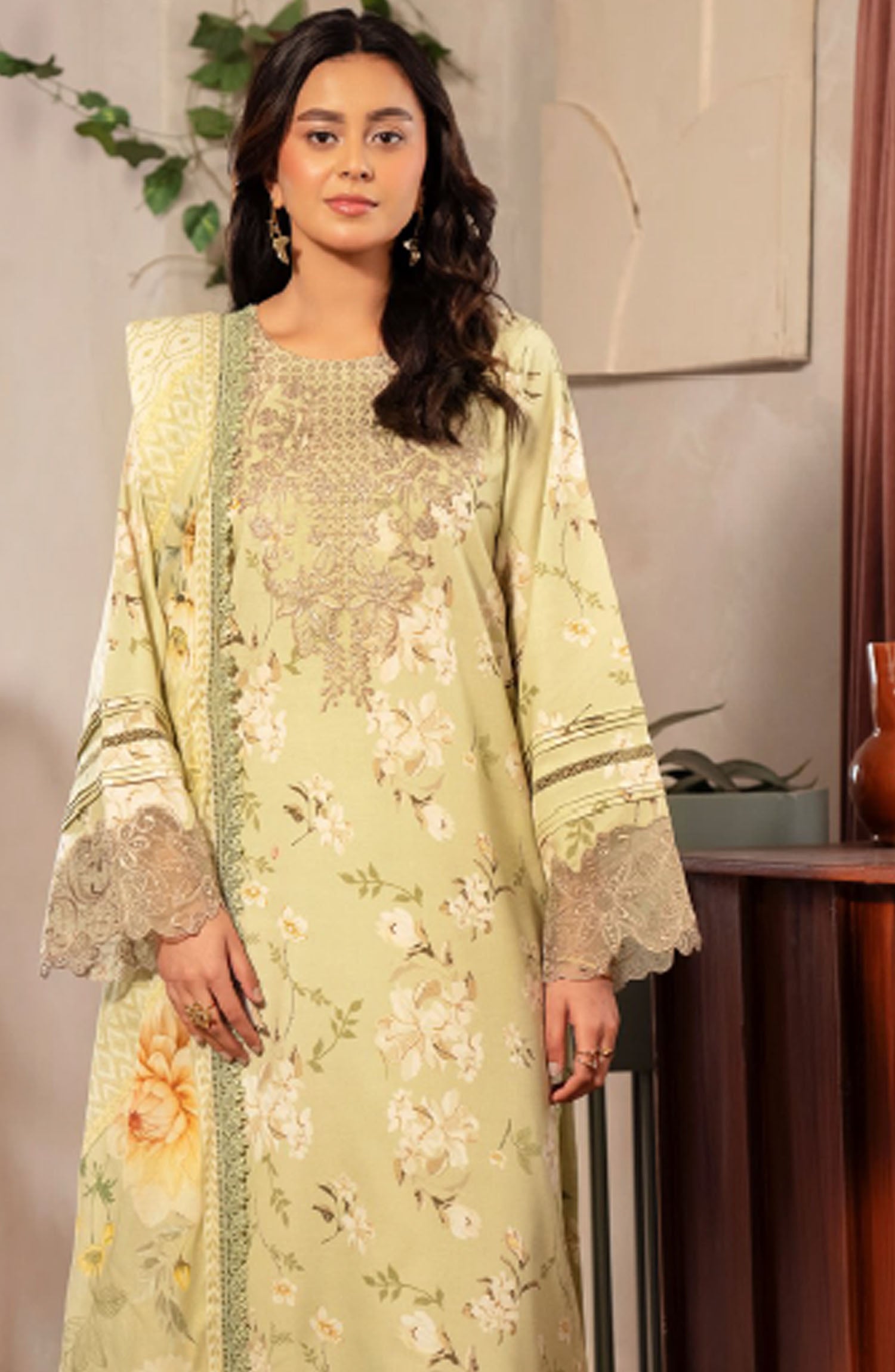 The standard style comes as a long-sleeved kameez with dupatta and trouser/shawlar.