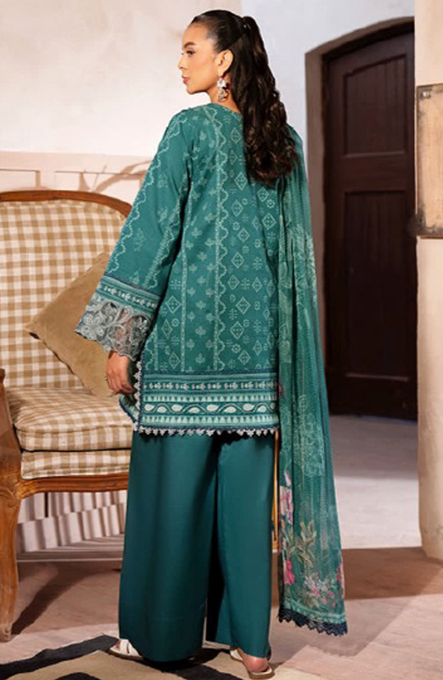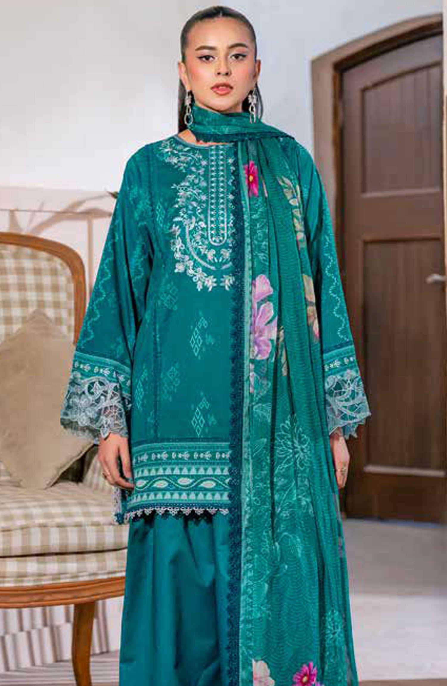 The standard style comes as a long-sleeved kameez with dupatta and trouser/shawlar.