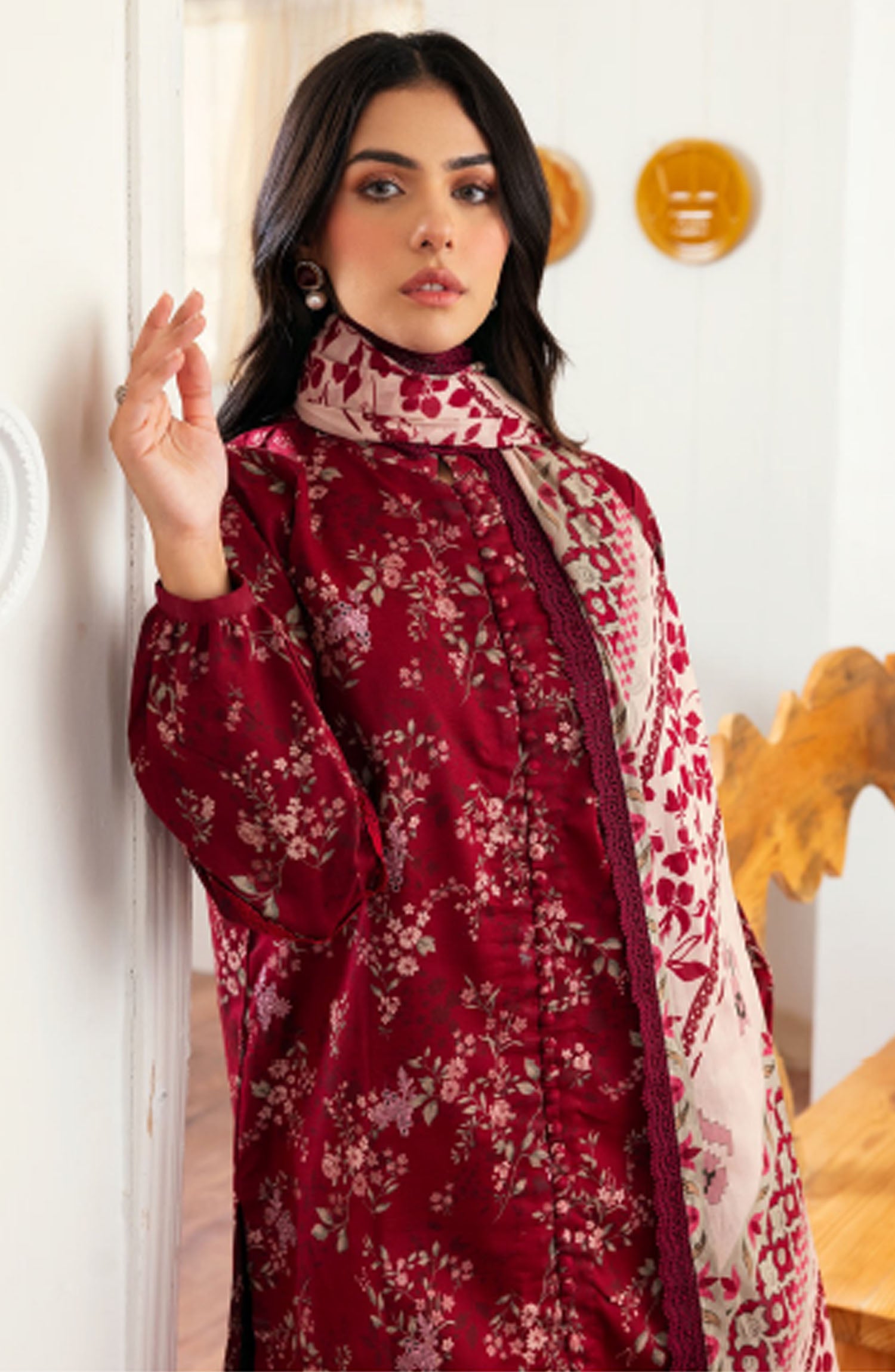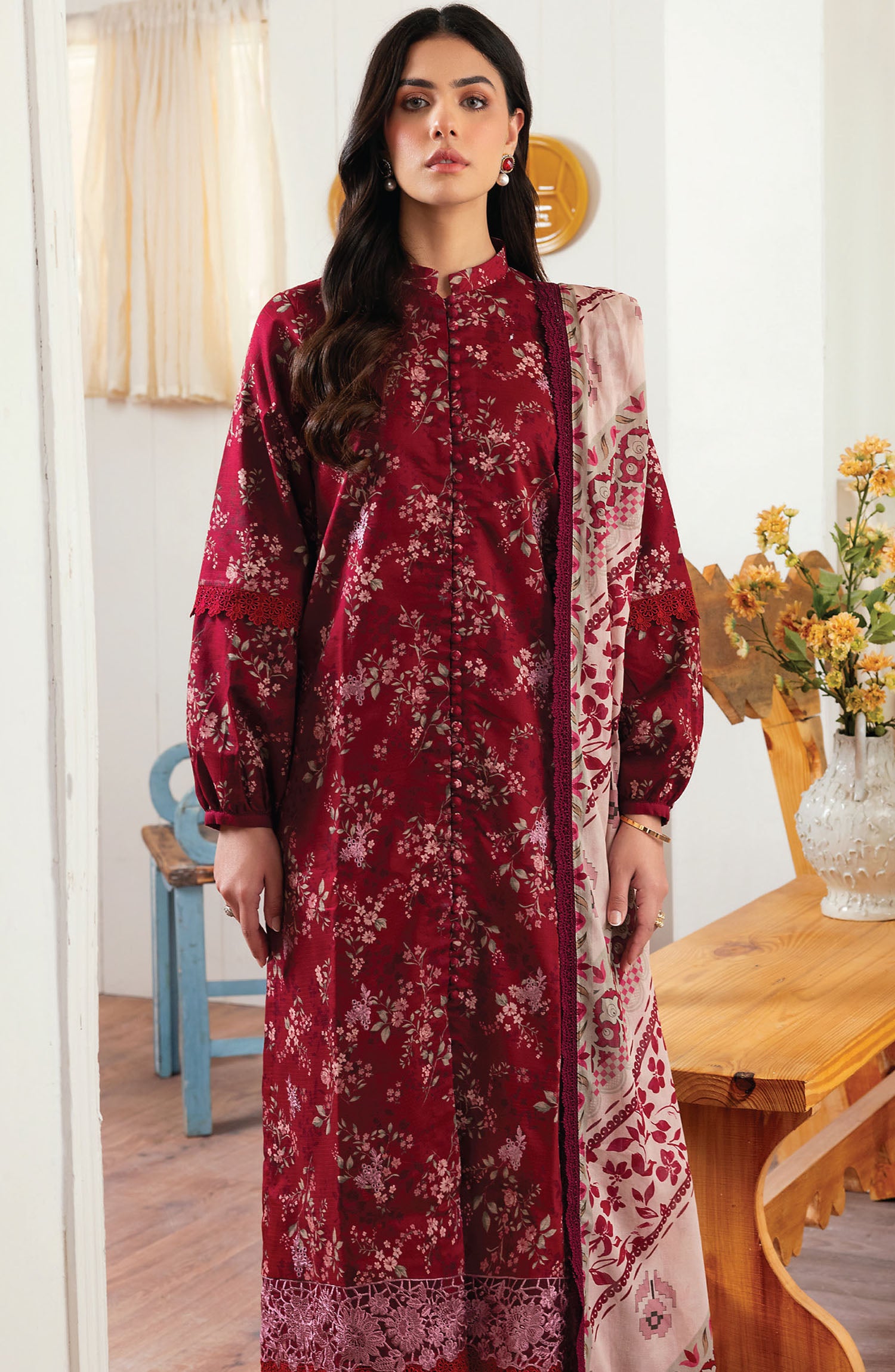 Home Zync by Florent Embroidered Lawn Unstitched 3 Piece Suit - ZY-01 A - FL25ZYL - Maroon - Summer Collection