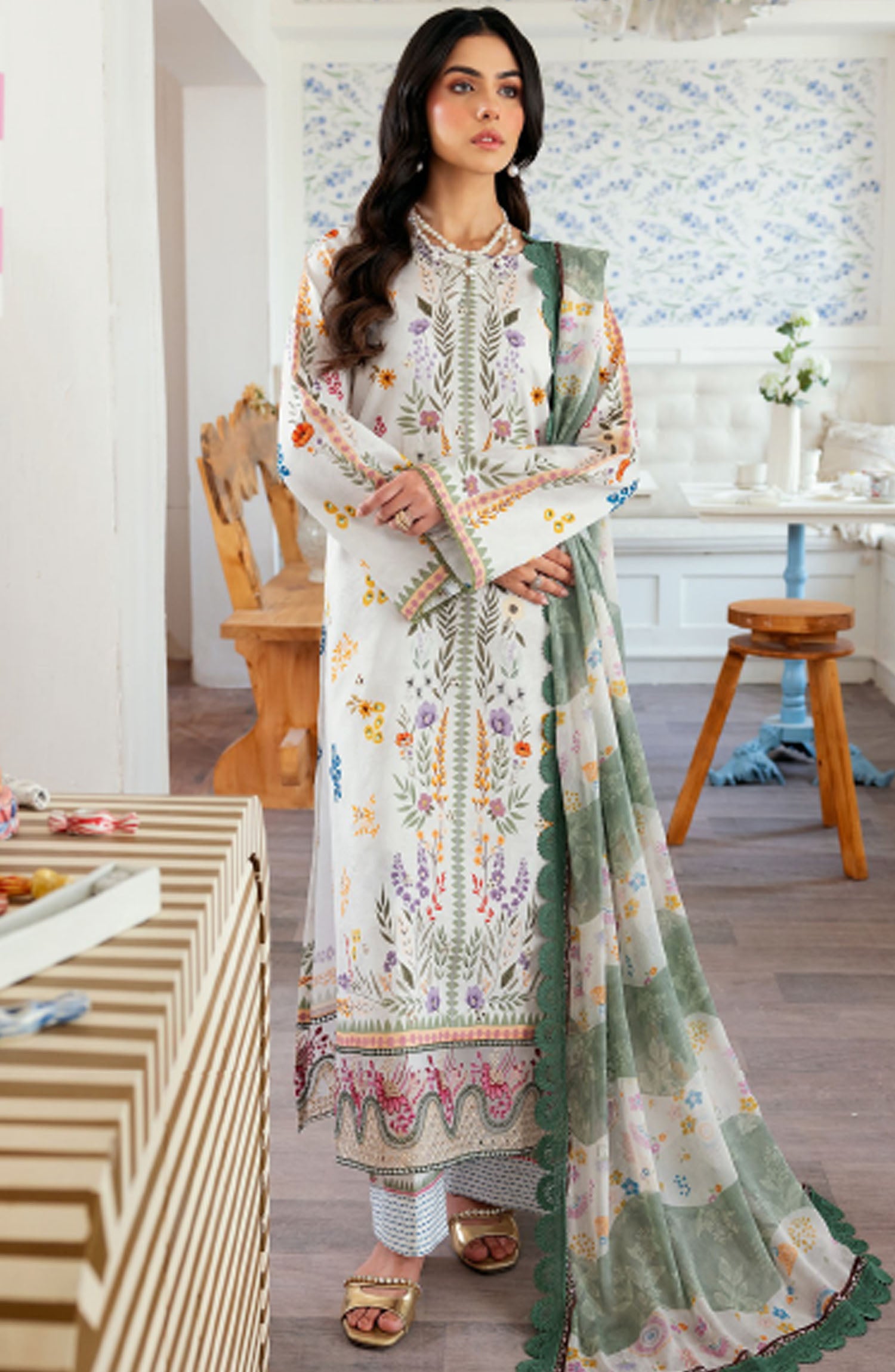 Home Zync by Florent Embroidered Lawn Unstitched 3 Piece Suit - ZY-02 A - FL25ZYL - Off White - Summer Collection