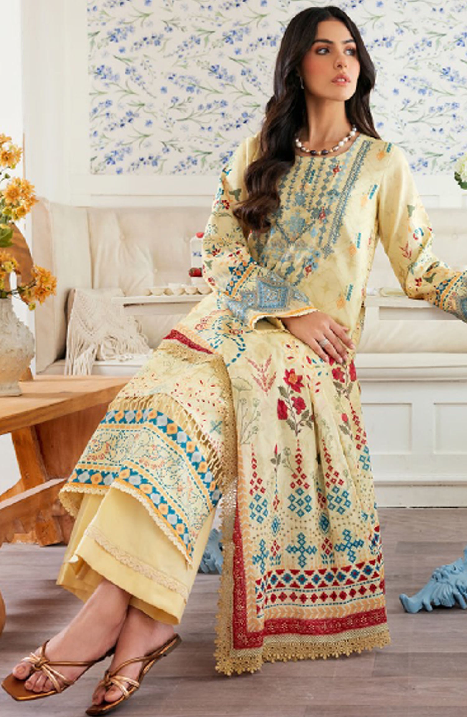Home Zync by Florent Embroidered Lawn Unstitched 3 Piece Suit - ZY-03 A - FL25ZYL - Yellow - Summer Collection