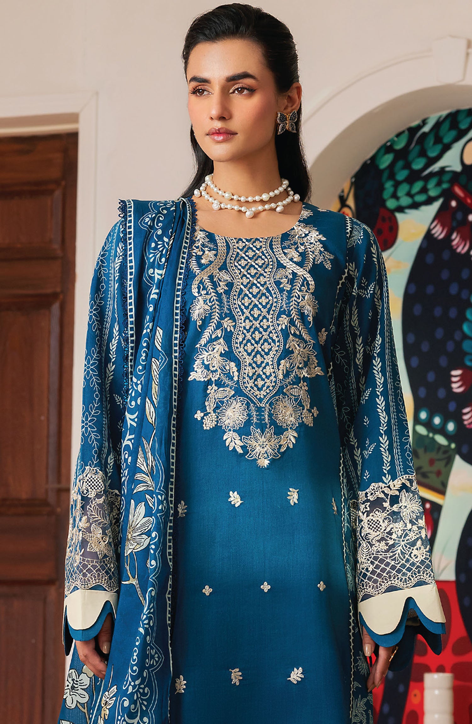 Home Zync by Florent Embroidered Lawn Unstitched 3 Piece Suit - ZY-04 B - FL25ZYL - Blue - Summer Collection