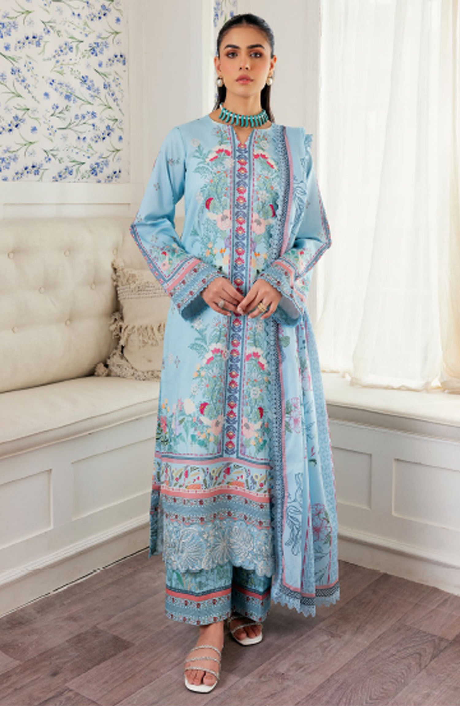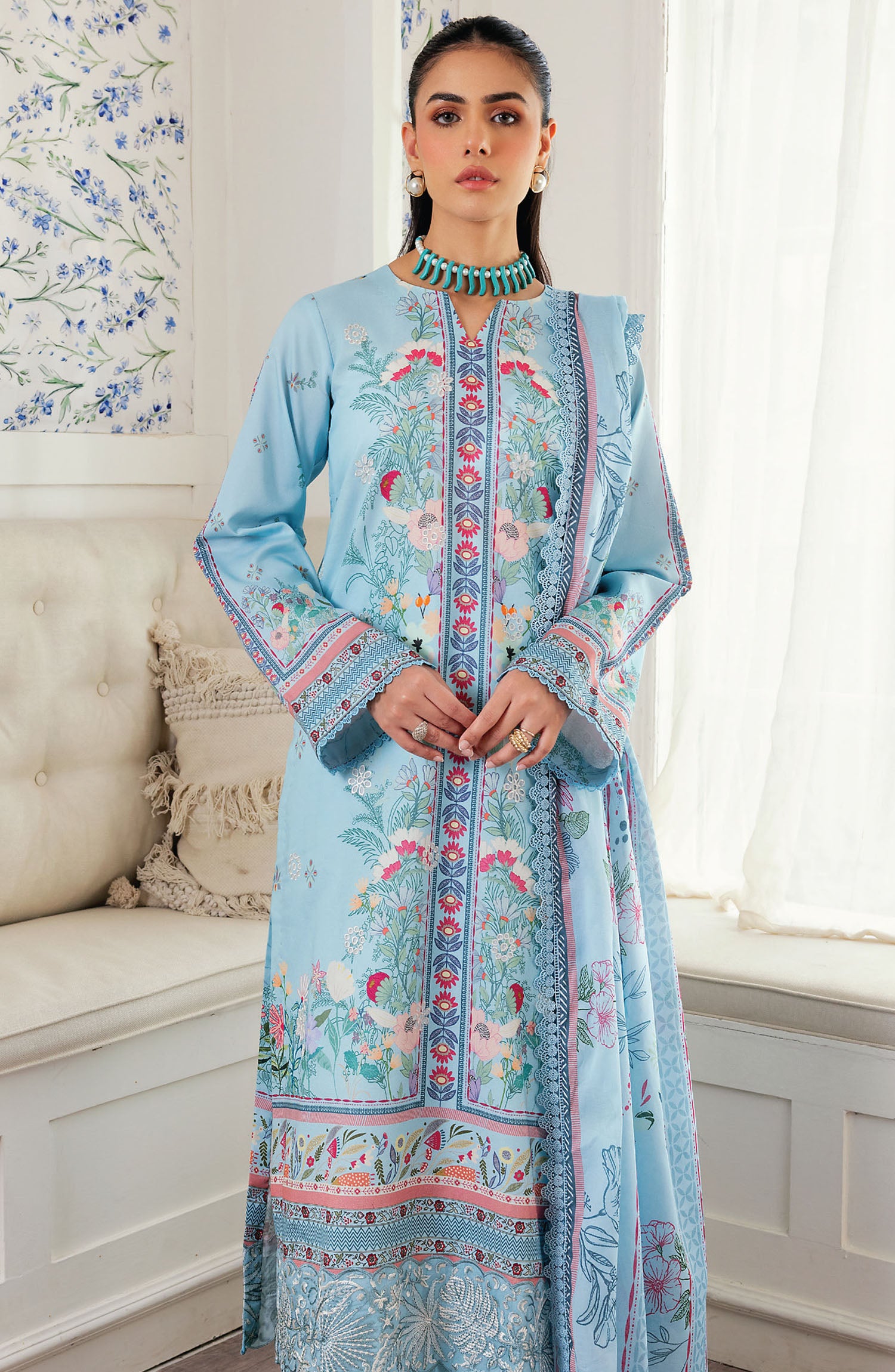 Home Zync by Florent Embroidered Lawn Unstitched 3 Piece Suit - ZY-06 A - FL25ZYL - Blue - Summer Collection