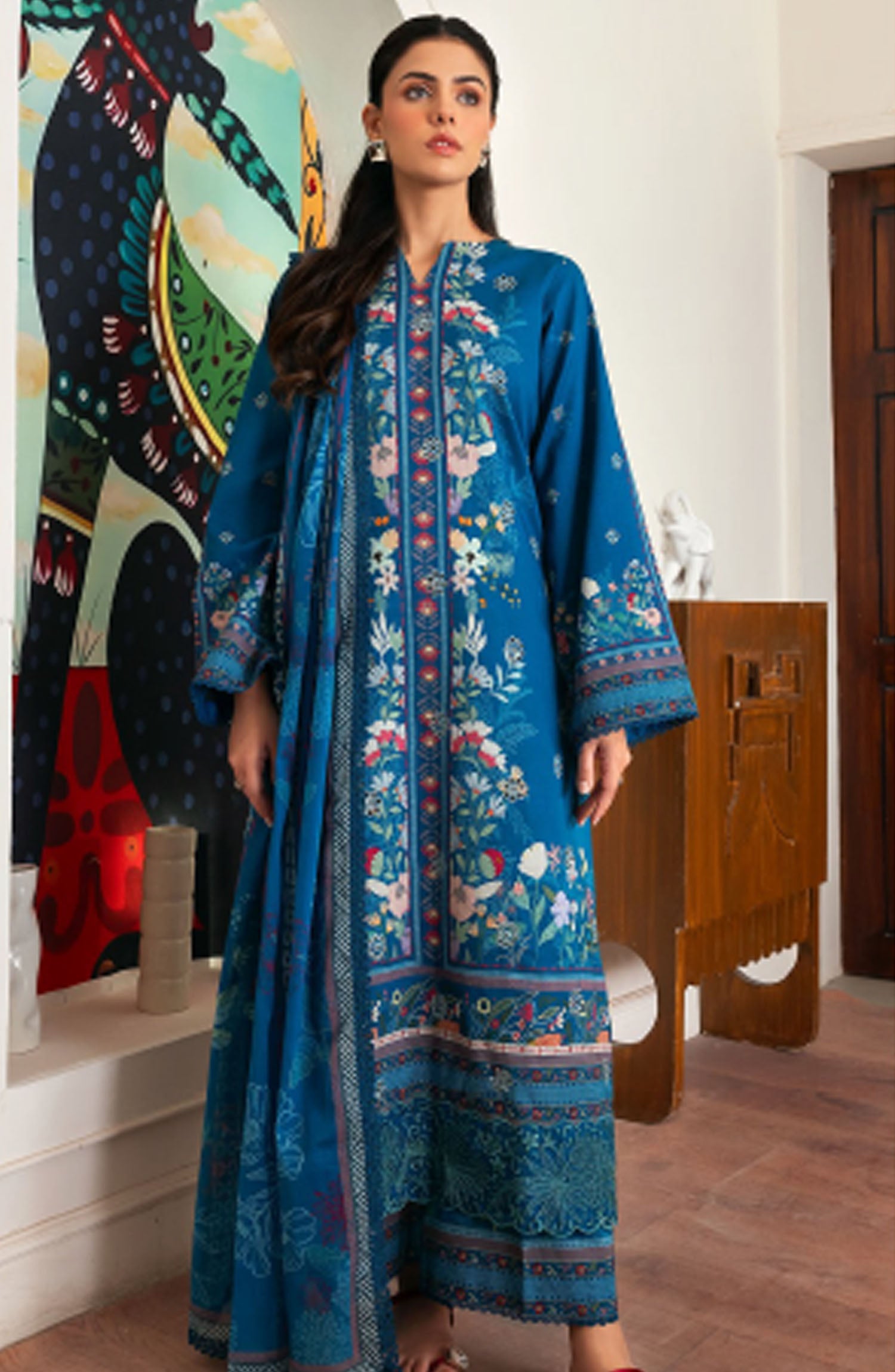 Home Zync by Florent Embroidered Lawn Unstitched 3 Piece Suit - ZY-06 B - FL25ZYL - Blue - Summer Collection