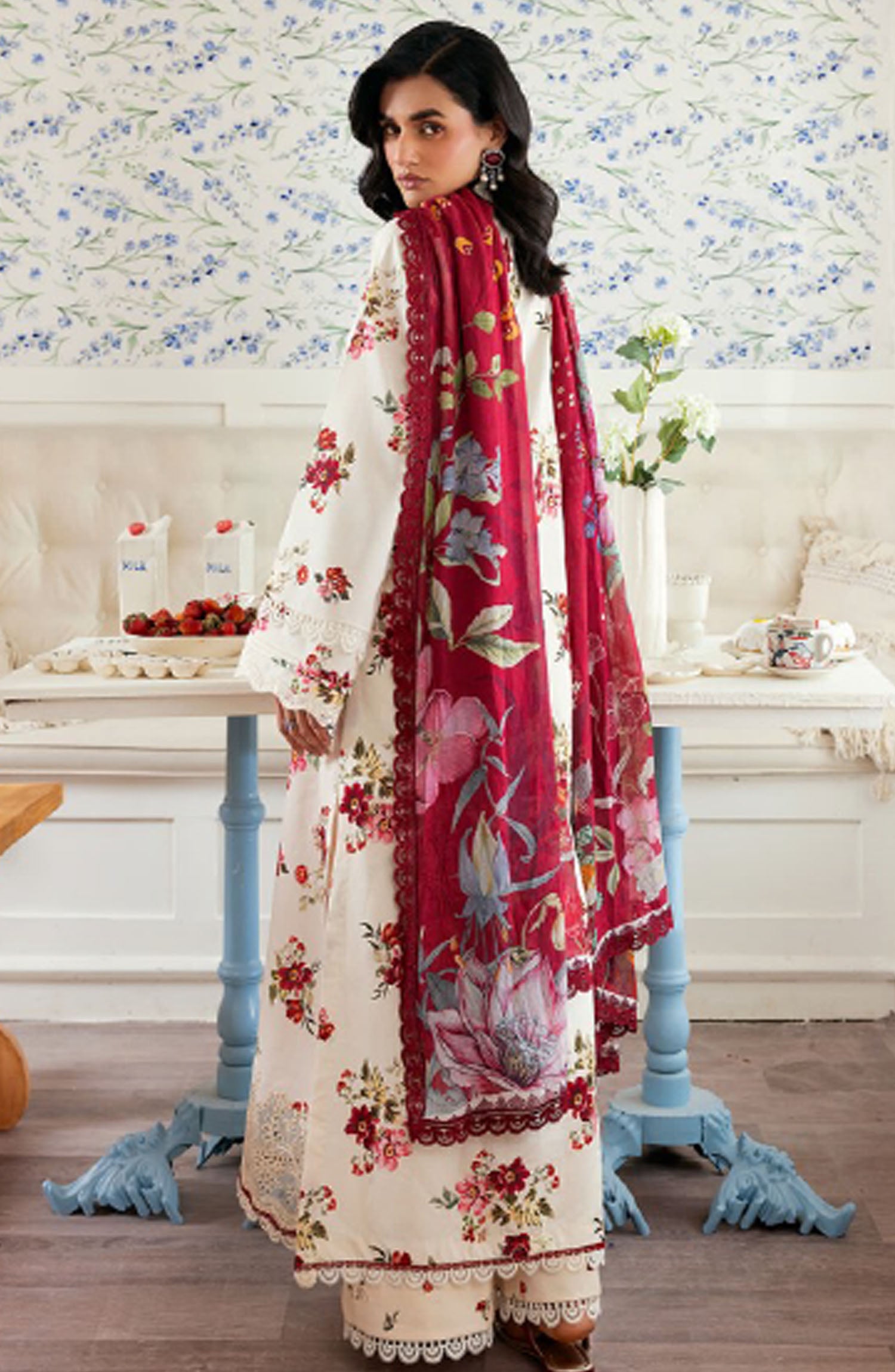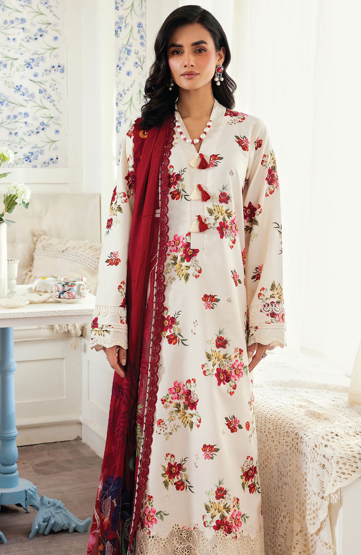 Home Zync by Florent Embroidered Lawn Unstitched 3 Piece Suit - ZY-07 A - FL25ZYL - Off White - Summer Collection