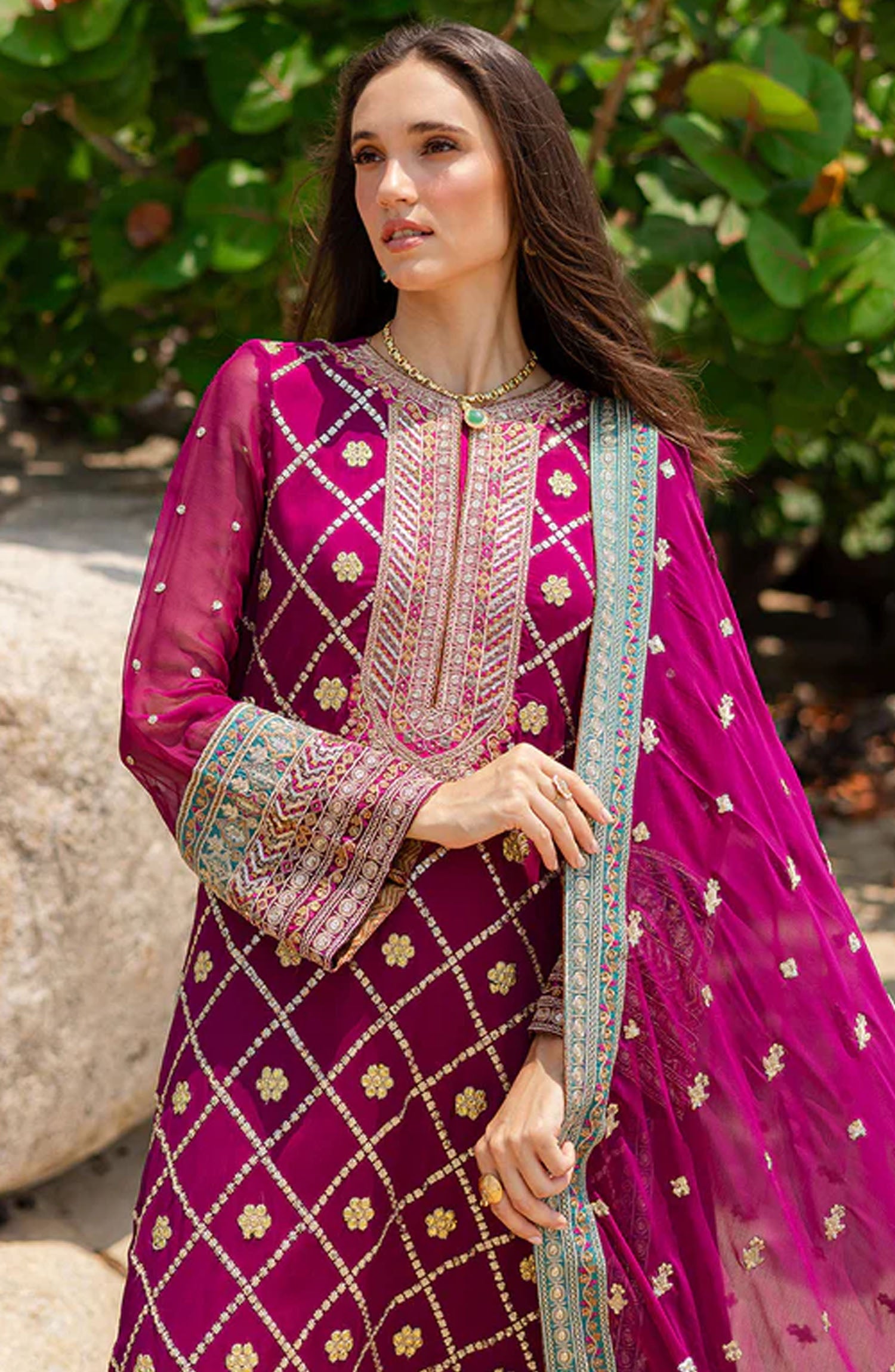 Zyra by Freesia Embroidered Chiffon Unstitched 3 Piece Suit - FW40051-Aditi - MNM25ZFC - Magenta - Festive Collection