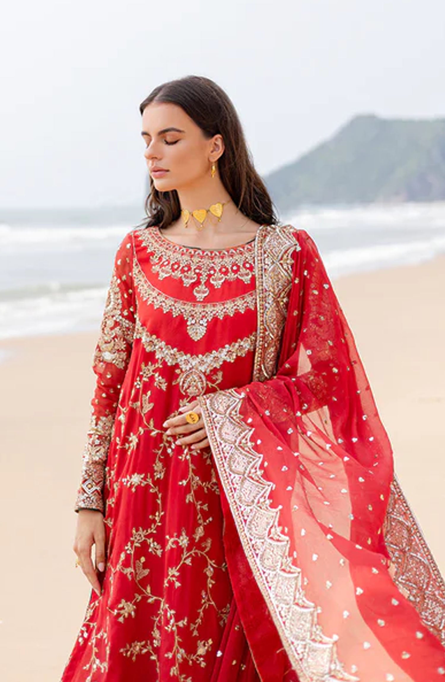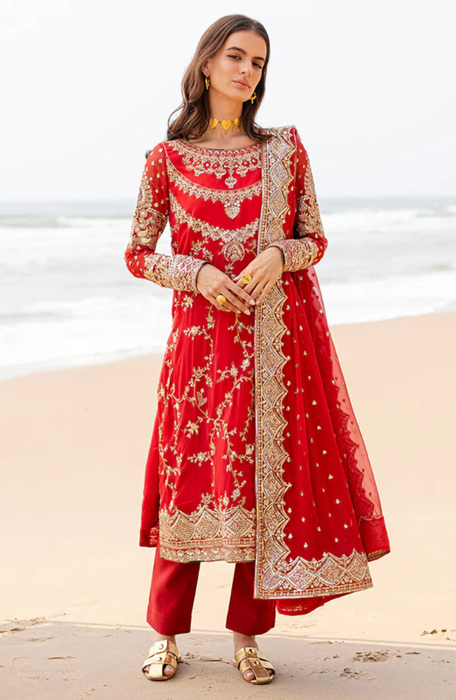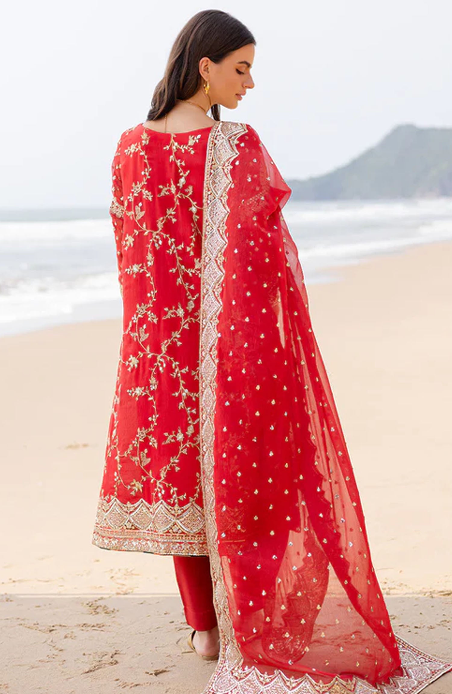 Zyra by Freesia Embroidered Chiffon Unstitched 3 Piece Suit - FW40055-Anvi - MNM25ZFC - Red - Festive Collection