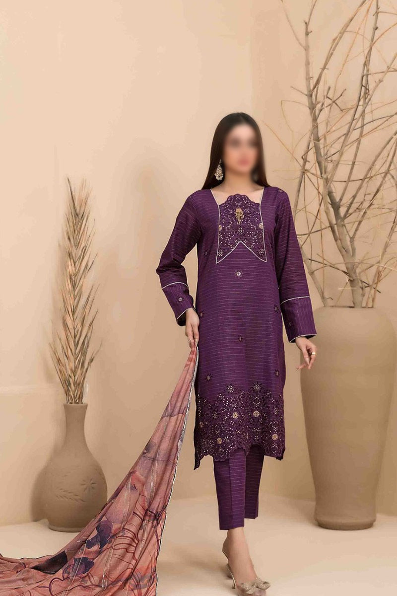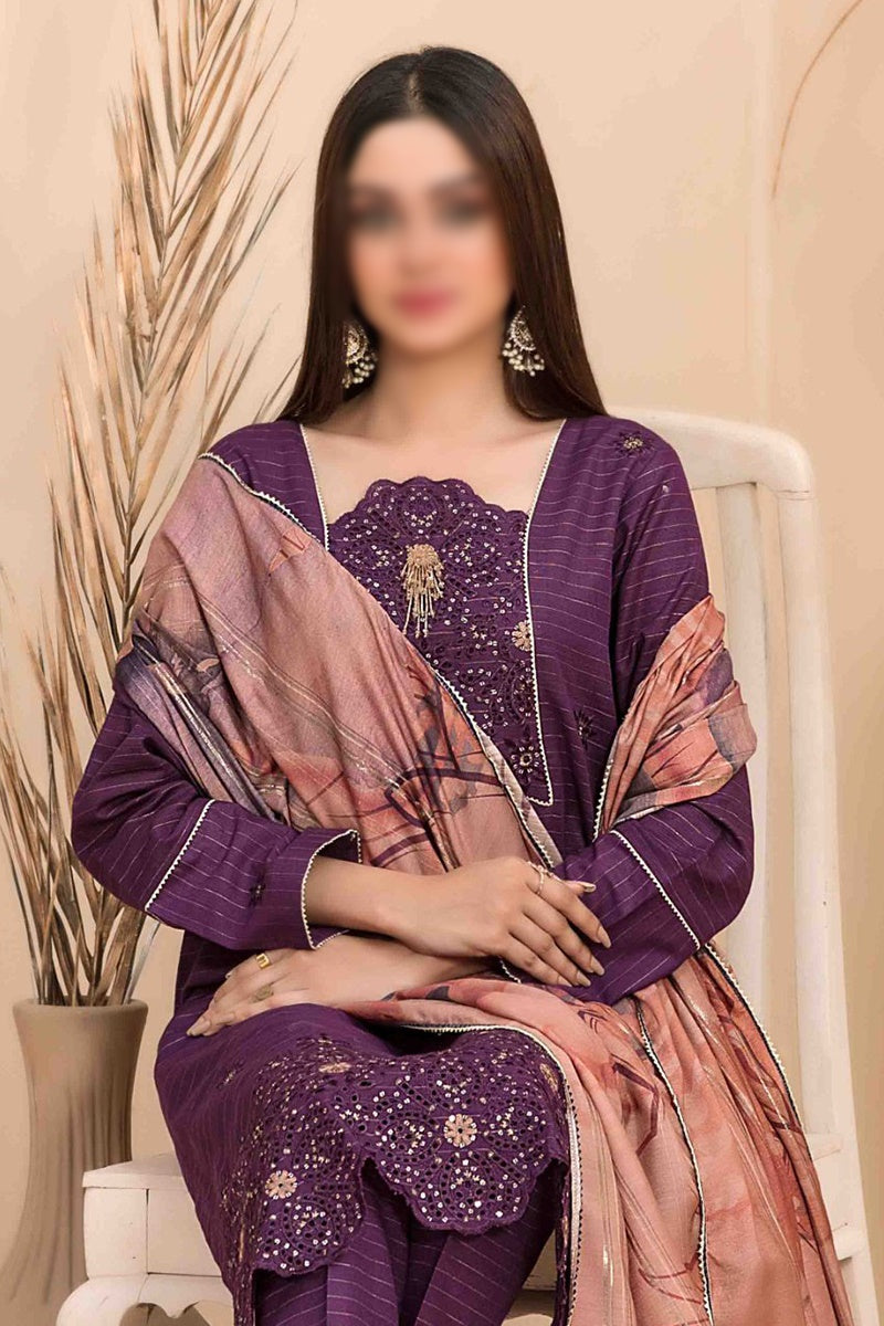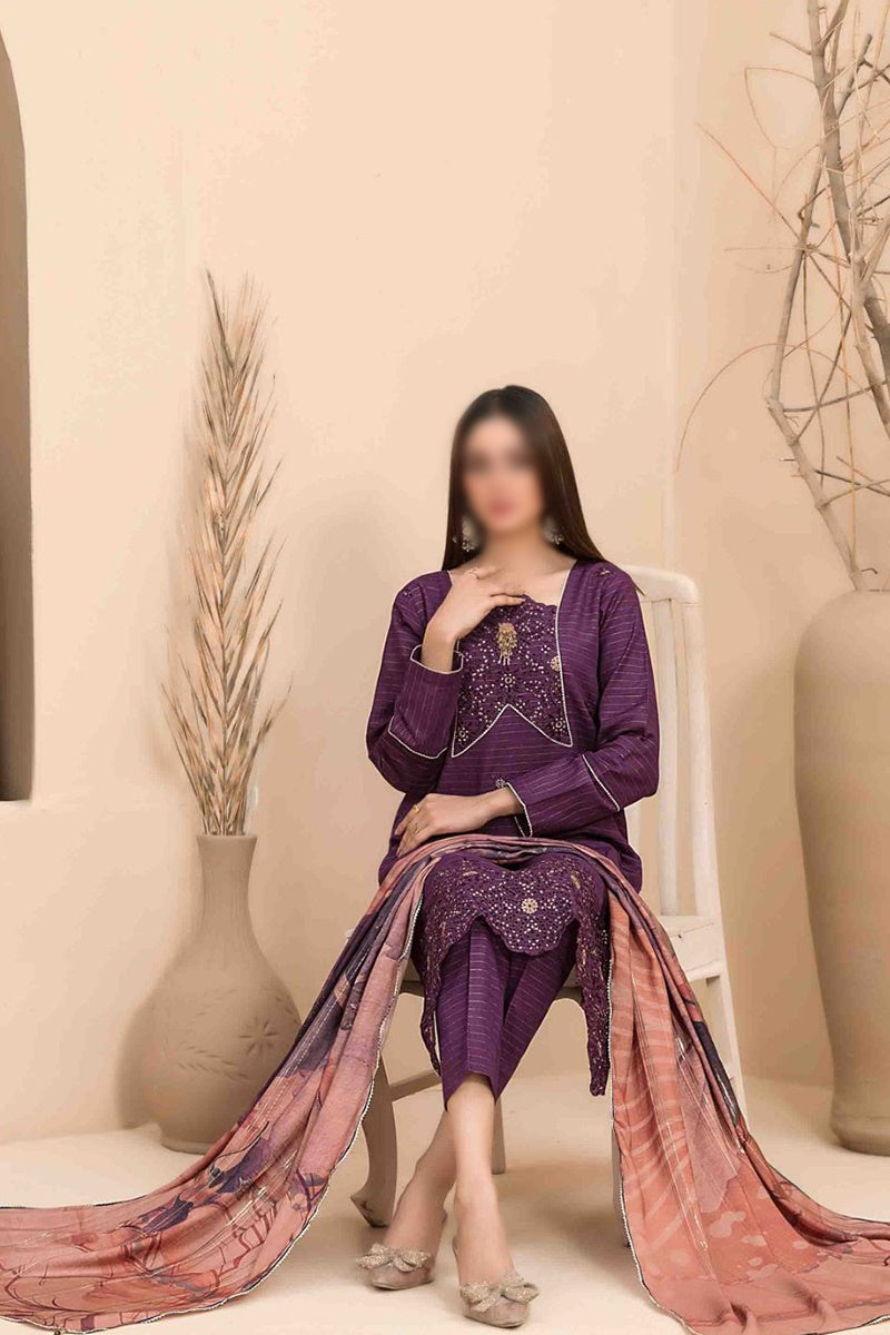 ZYVA Daman Embroidered Zari Khaddar Printed Diamond Shawl Collection 2023 has been styled in the image for photography and illustrative purposes.